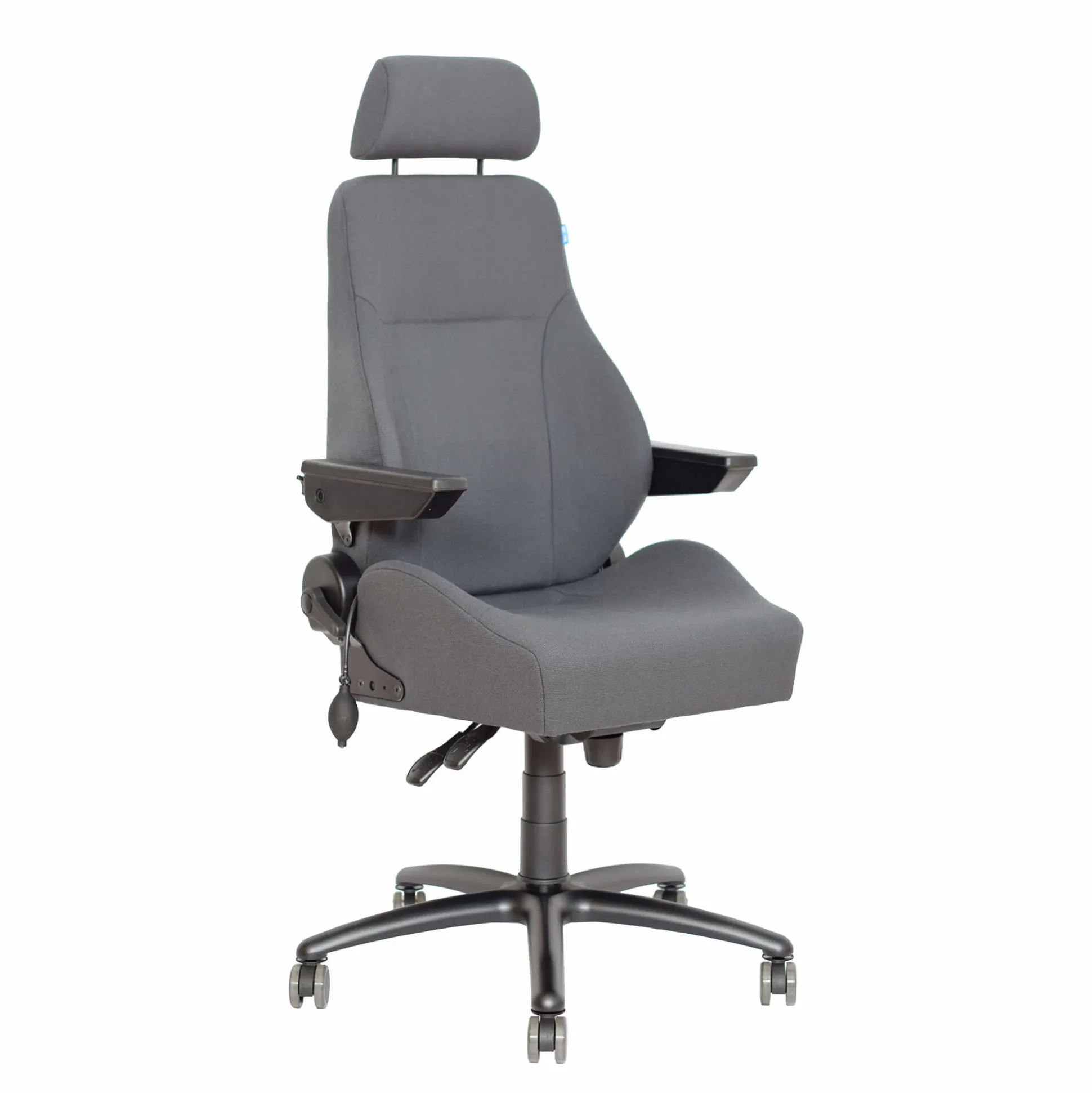 Funktionerne betjenes let fx quick release, trinløs højdejustering, sædetilt og justerbar lændestøtte. Stolen har som standard 4-vejs nakkestøtte.