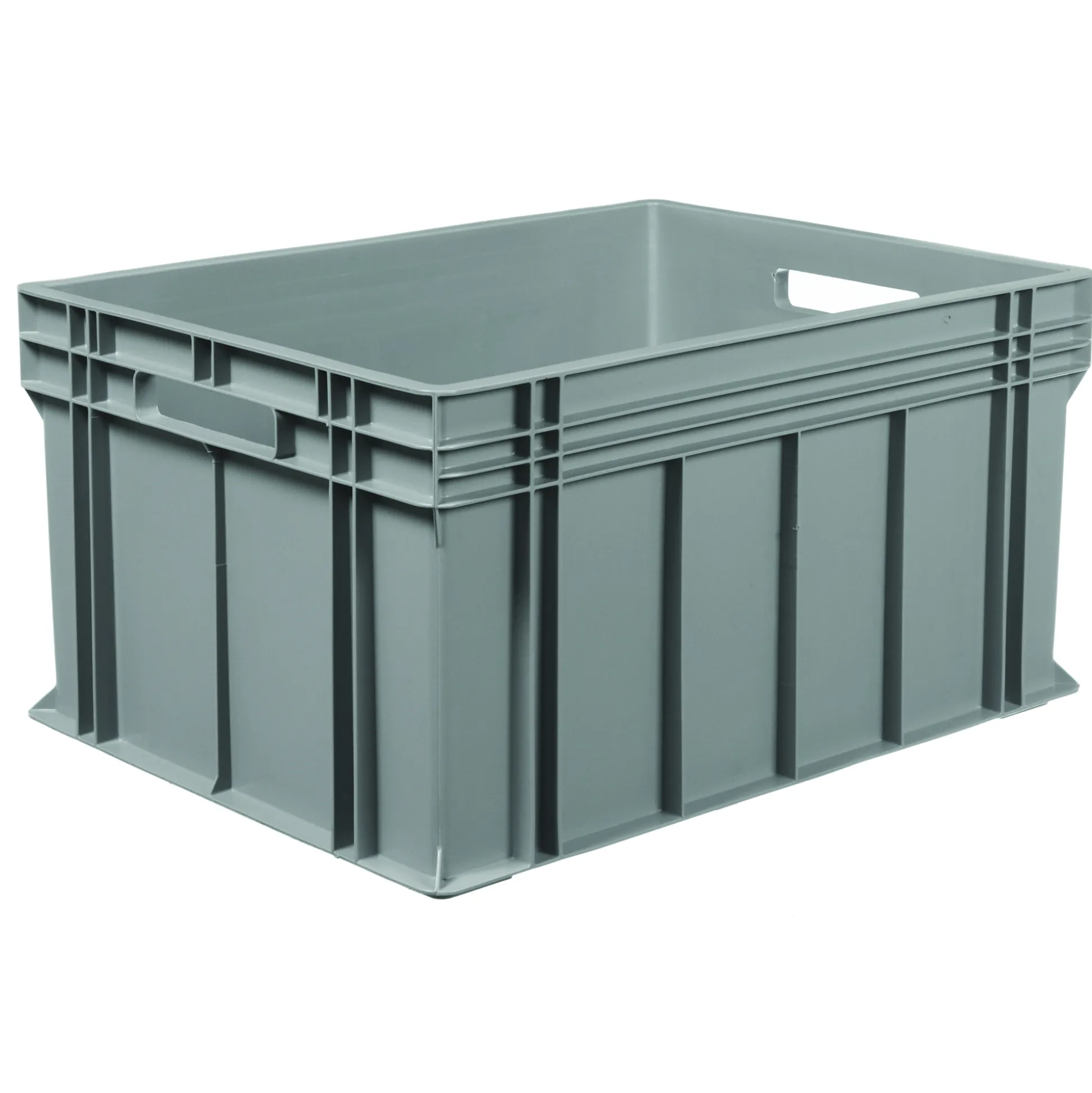 Arca Systems kasser. Stabelbare EURO kasser for rationel logistik. Med håndtagshul. Mål: 80x60x41,5h cm. Kasserne udformning gir styrken og stabiliteten under transport. Kasserne er modulære, så stabling og opbevaring forenkles.