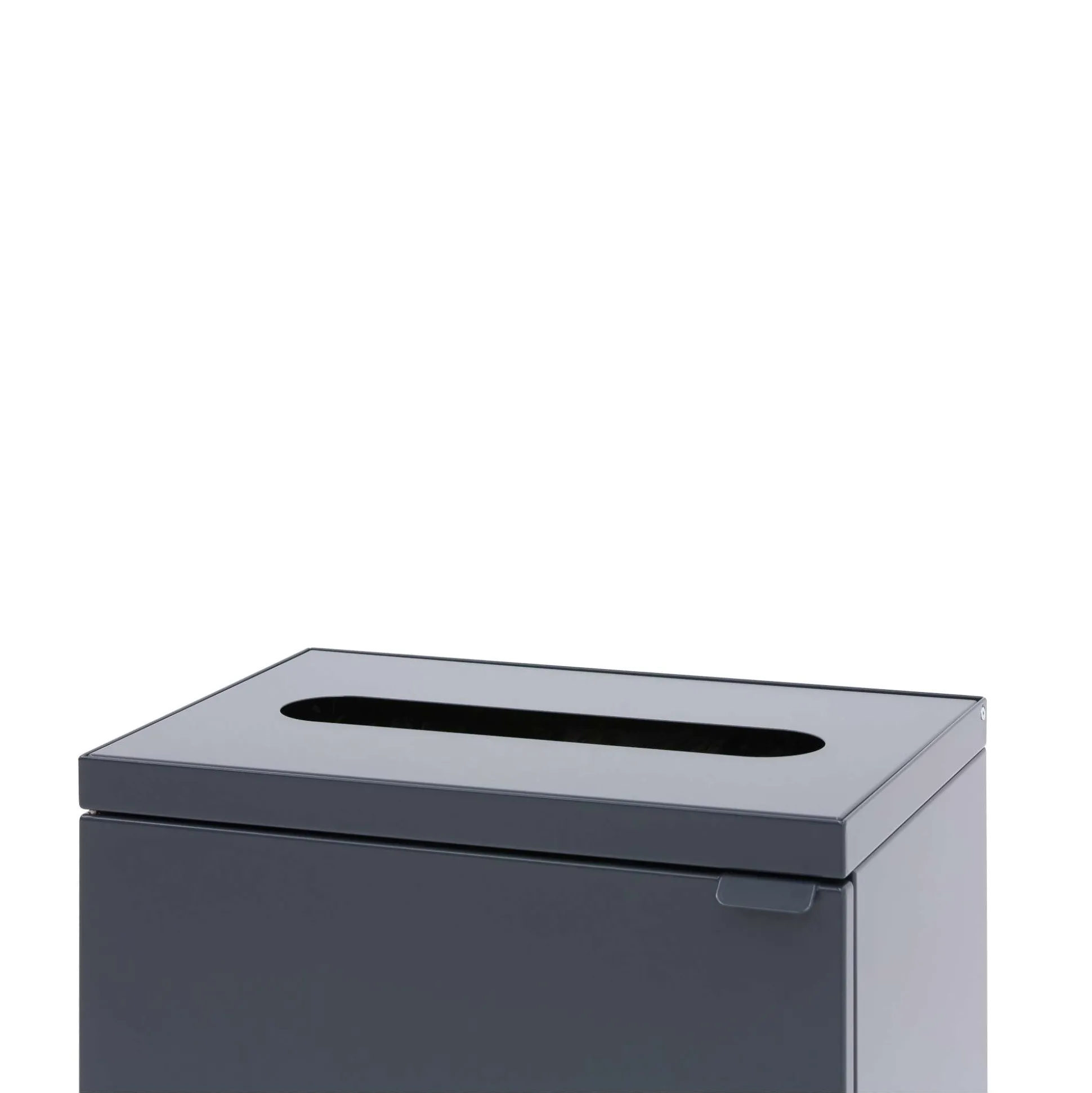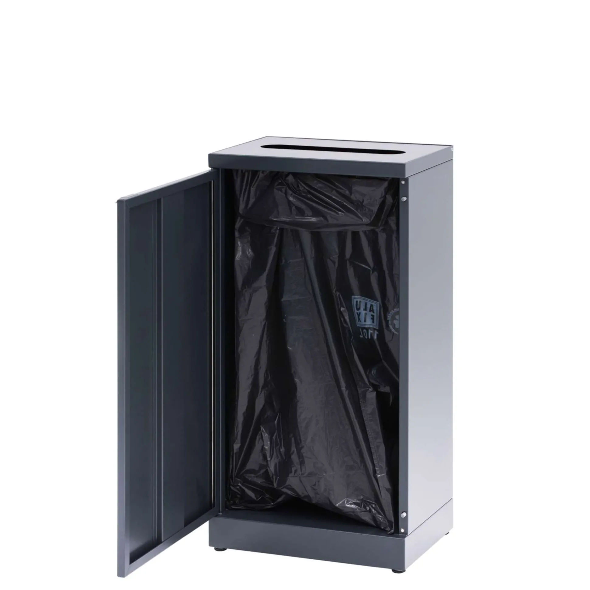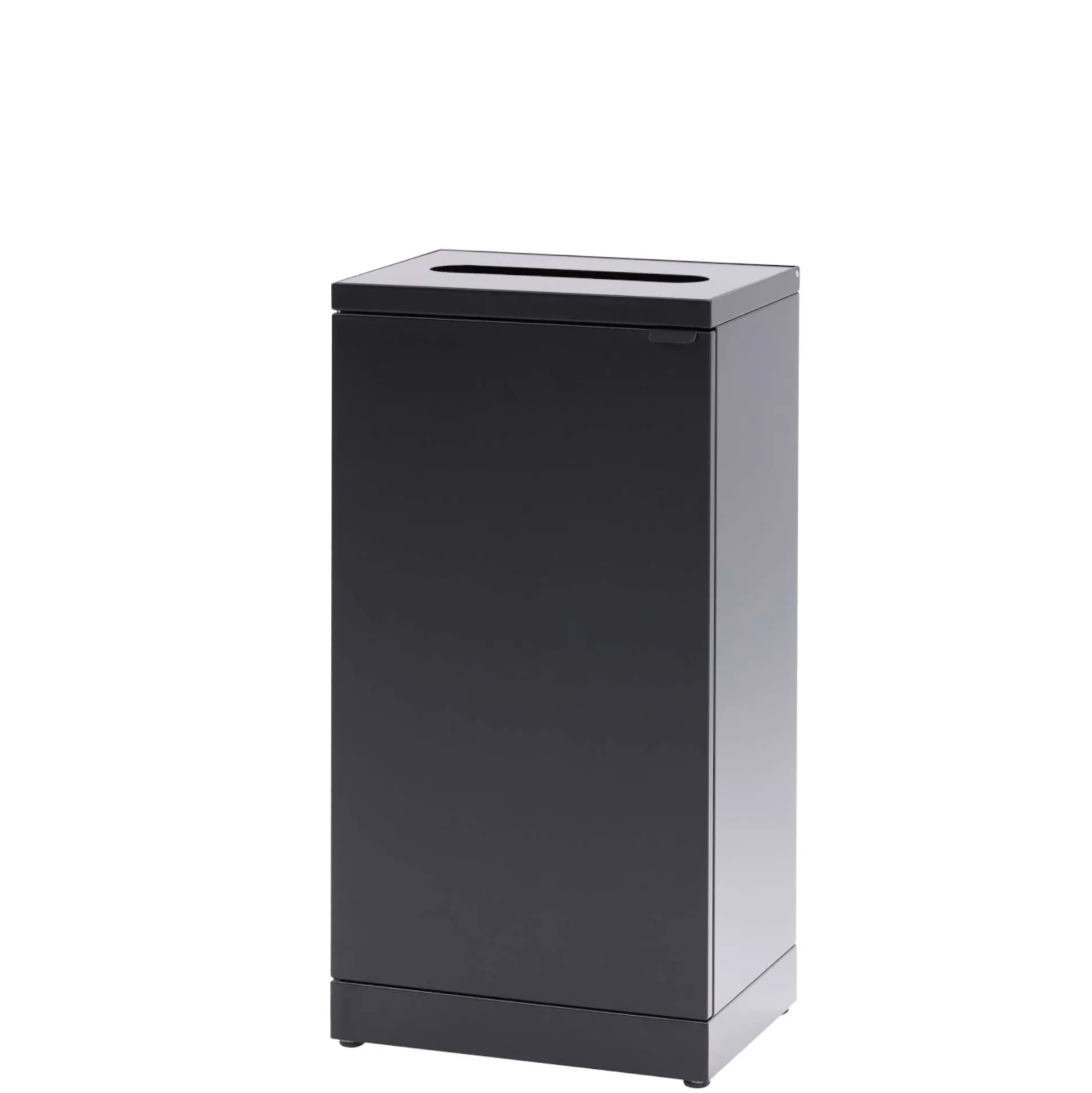 Denne affaldsbeholder til kildesortering er med papirindkast. Låget har soft close og der er integreret poseholder. Beholderen i pulverlakeret stål har en kapacitet på 95 liter og måler 42,5x30x84,5h cm. En elegant løsning til kontoret/kantinen.