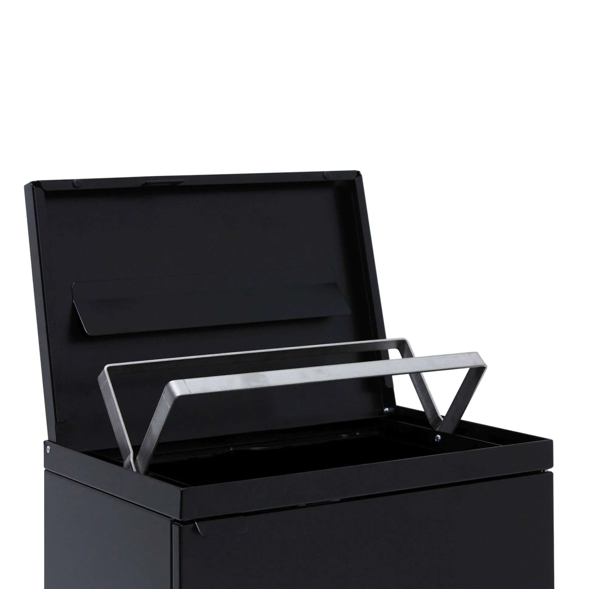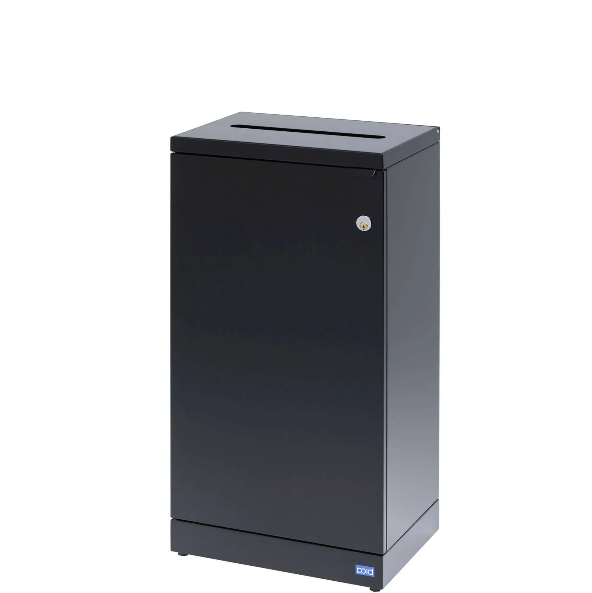 Denne affaldsbeholder til kildesortering har indkast til papir. Sikker bortskaffelse, da man ikke kan kigge ned i beholderen og den er beskyttet med lås. Låget har soft close og der er integreret poseholder. Beholderen i pulverlakeret stål har en kapacitet på 95 liter og måler 42,5x30x84,5h cm. En elegant løsning til kontoret/kantinen.