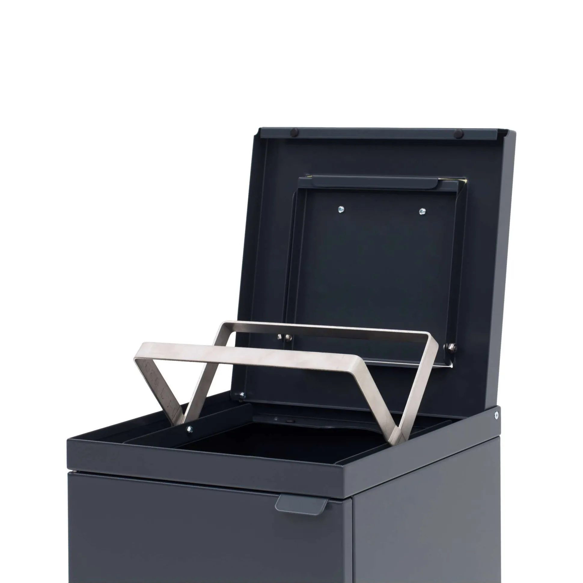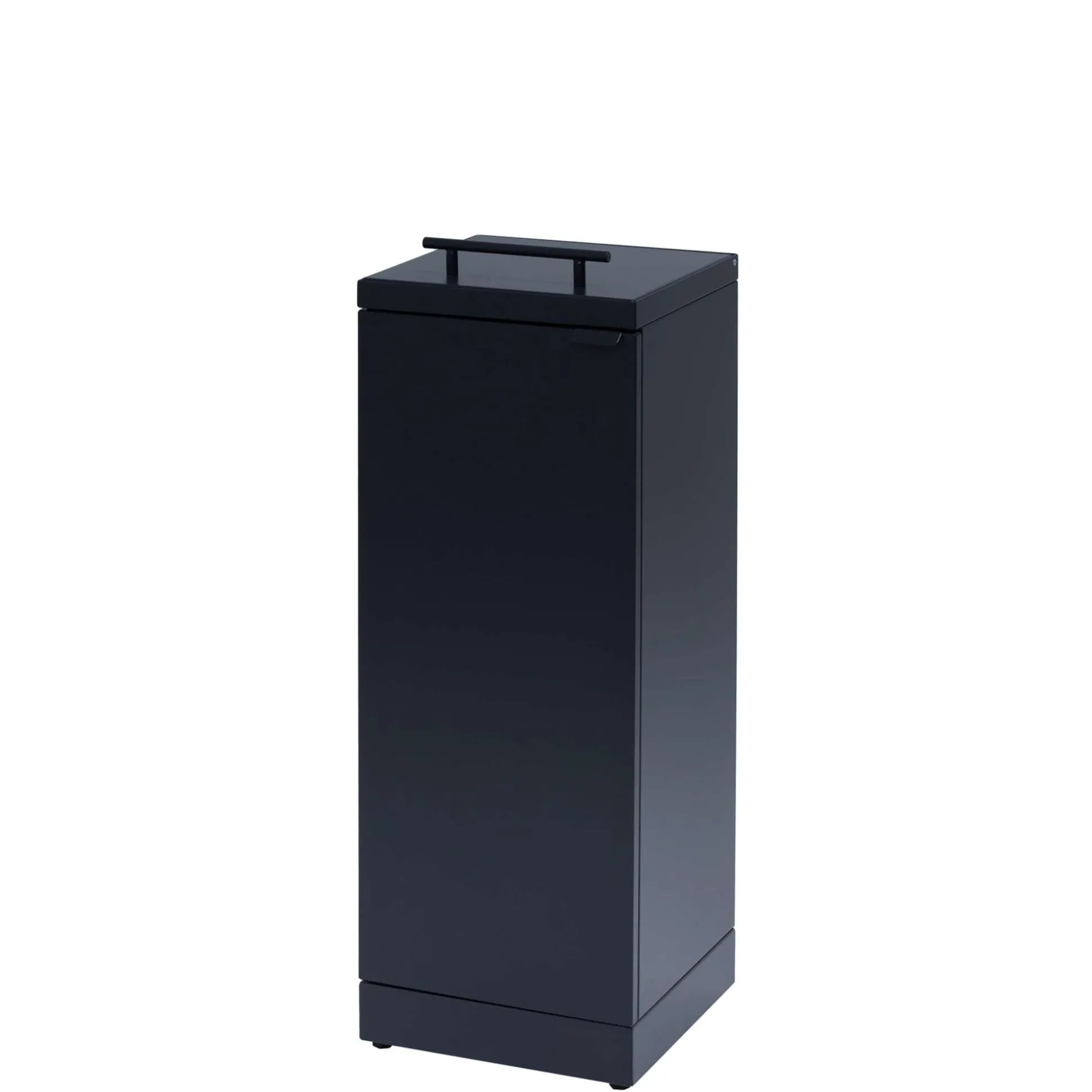 Denne affaldsbeholder til kildesortering med låg, er velegnet organisk affald. Låget har soft close og der er integreret poseholder. Beholderen i pulverlakeret stål har en kapacitet på 65 liter og måler 30x30x84,5h cm. En elegant løsning til kontoret/kantinen.