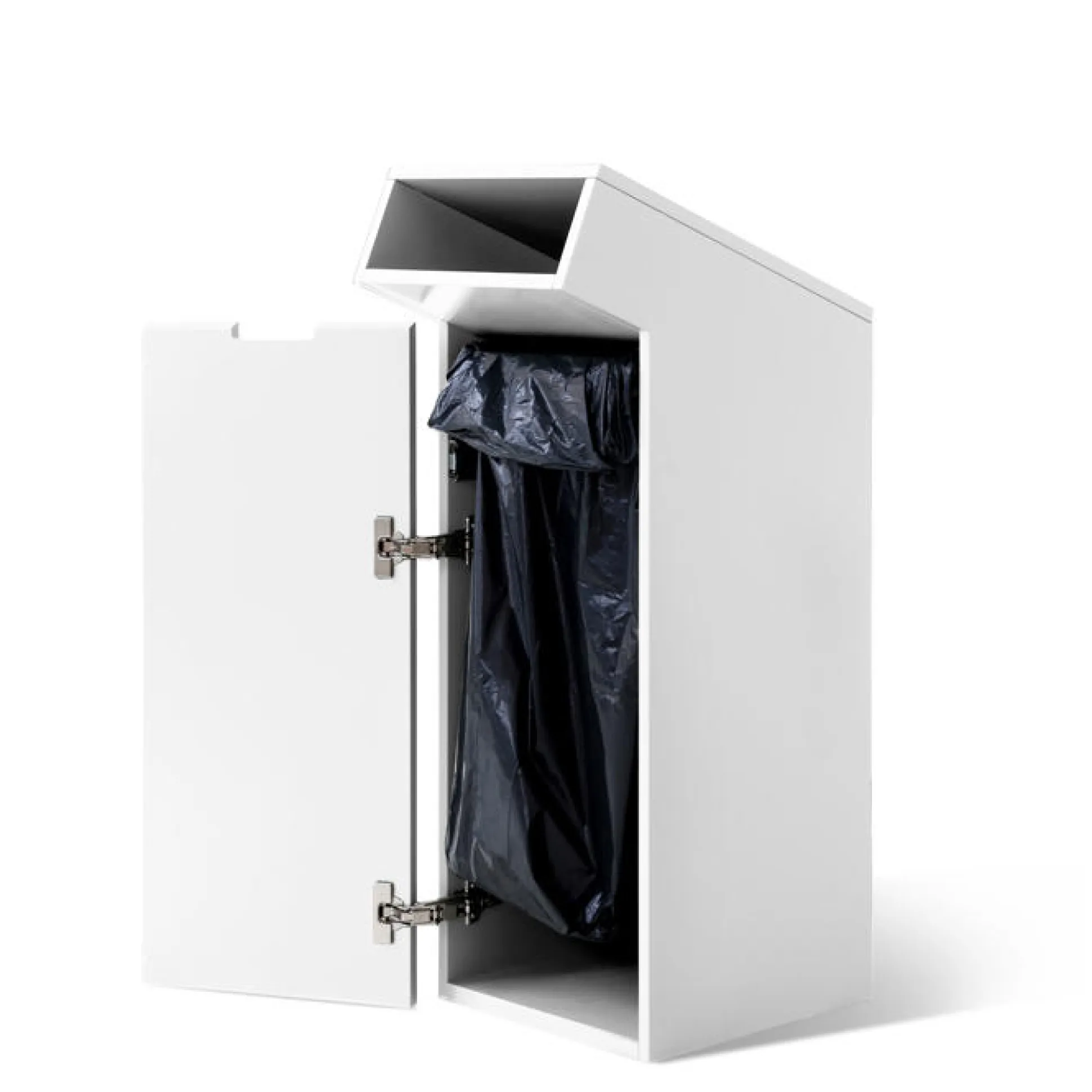 Affaldsbeholderen fås både med en enkelt og dobbelt åbning, så du kan smide affaldet ud fra 2 sider. Med den udtrækkelige sækkeholder undgår du tunge løft, og gør kildesorteringen enkel og effektiv.