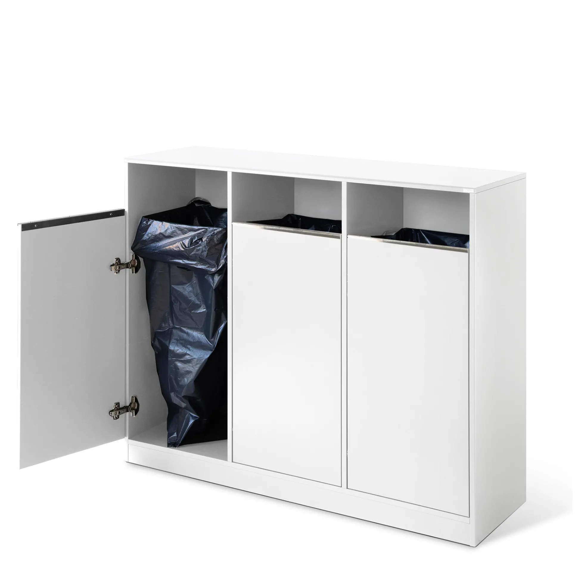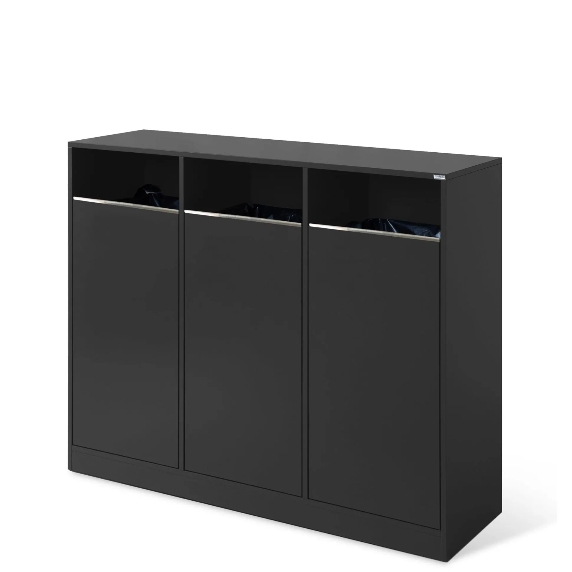 Smart og stilren affaldsstation med 3 rum på 80 liter til kontoret, kantinen eller andre steder. Placer den mod væggen eller midt i rummet og gør affaldssorteringen let tilgængelig. PURE-serien fås i tre størrelser, og har en udtrækkelig holder til affaldsposen for nem pose-udskiftning.