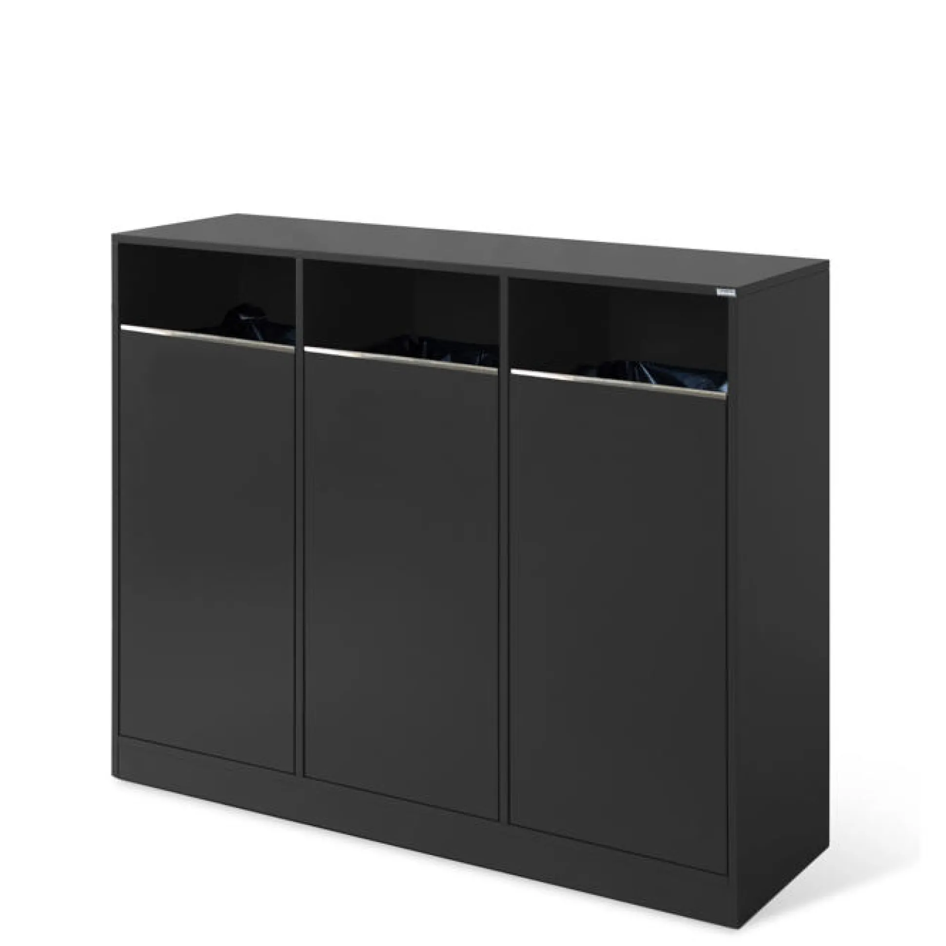 Affaldsstationen fås i størrelserne dobbelt og tredobbelt, og til mindre fraktioner er der også en 3-skuffe sektion til tredobbelt. Med en udtrækkelig sækkeholder undgår du tunge løft, og gør kildesorteringen enkel og effektiv.