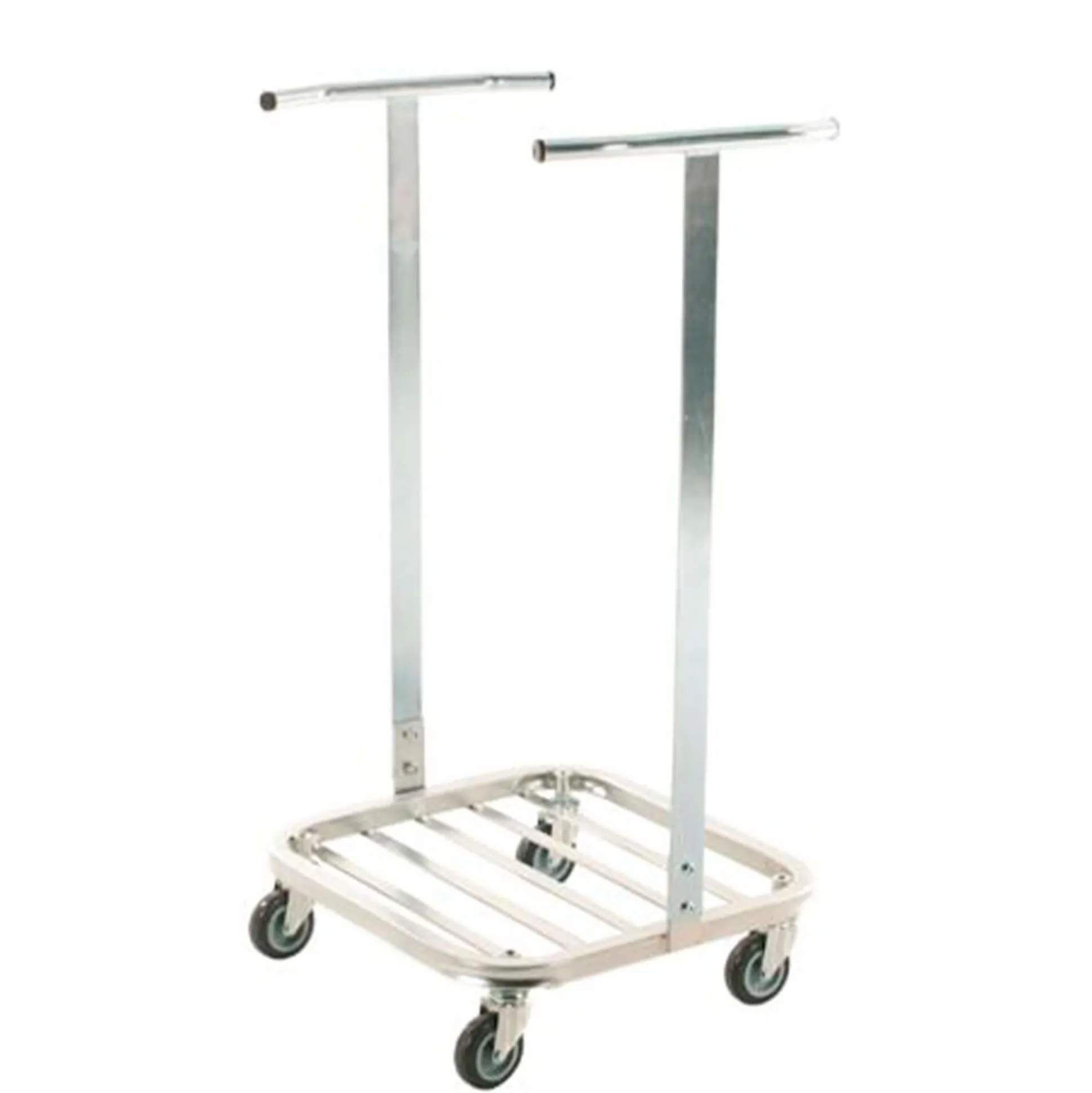 Affaldsvogn, elforzinket, til 125 liters sække. Leveres både med hjul og stilfødder. Hjulene er svingbare, Ø7,5 cm. Belastning: 75 kg.