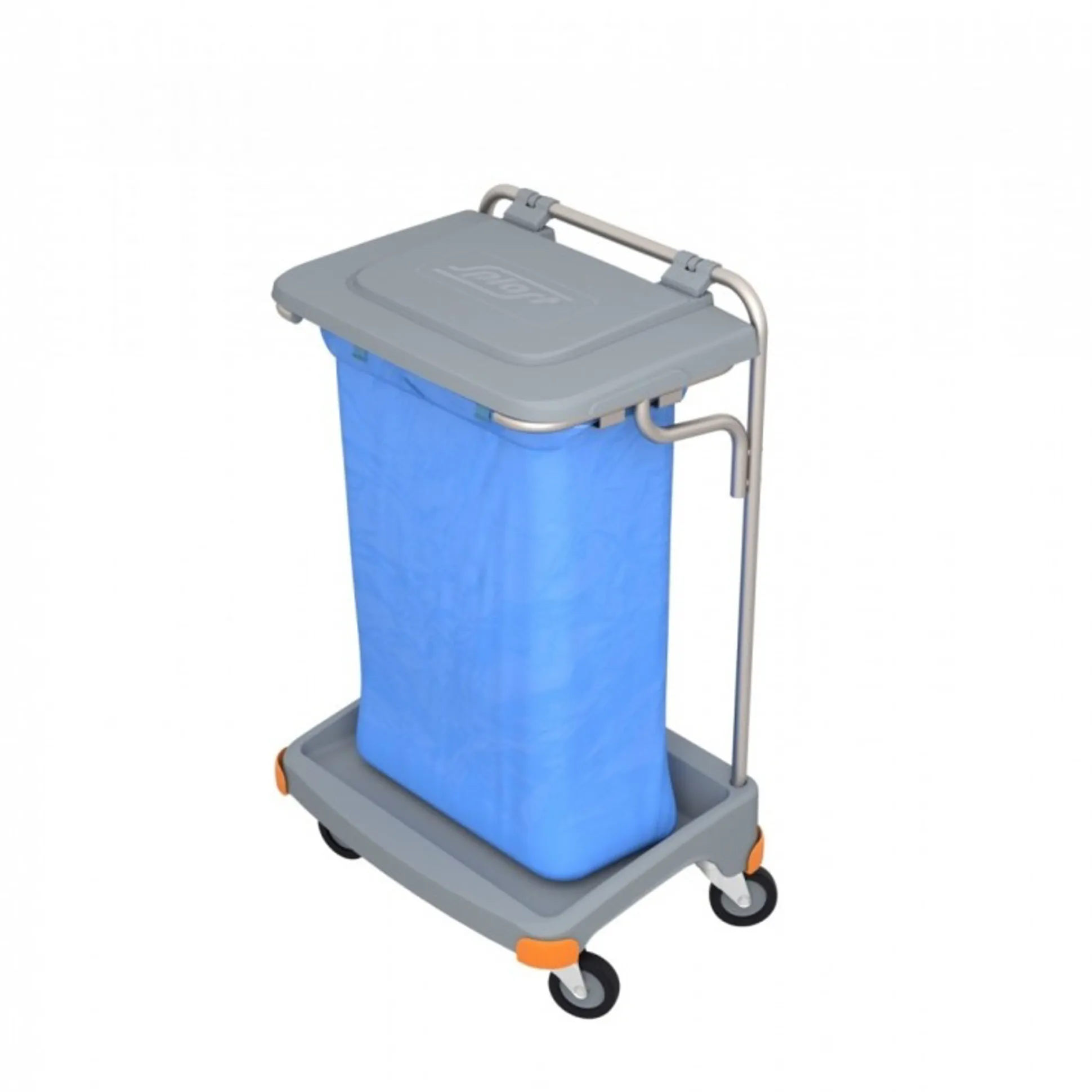 Kraftig affaldsvogn udført i metal med låg. Affaldsvognen har 4 drejelige gummi hjul for høj mobilitet. Affaldsvognen er udført så den passer til 100 liters affalds sække.