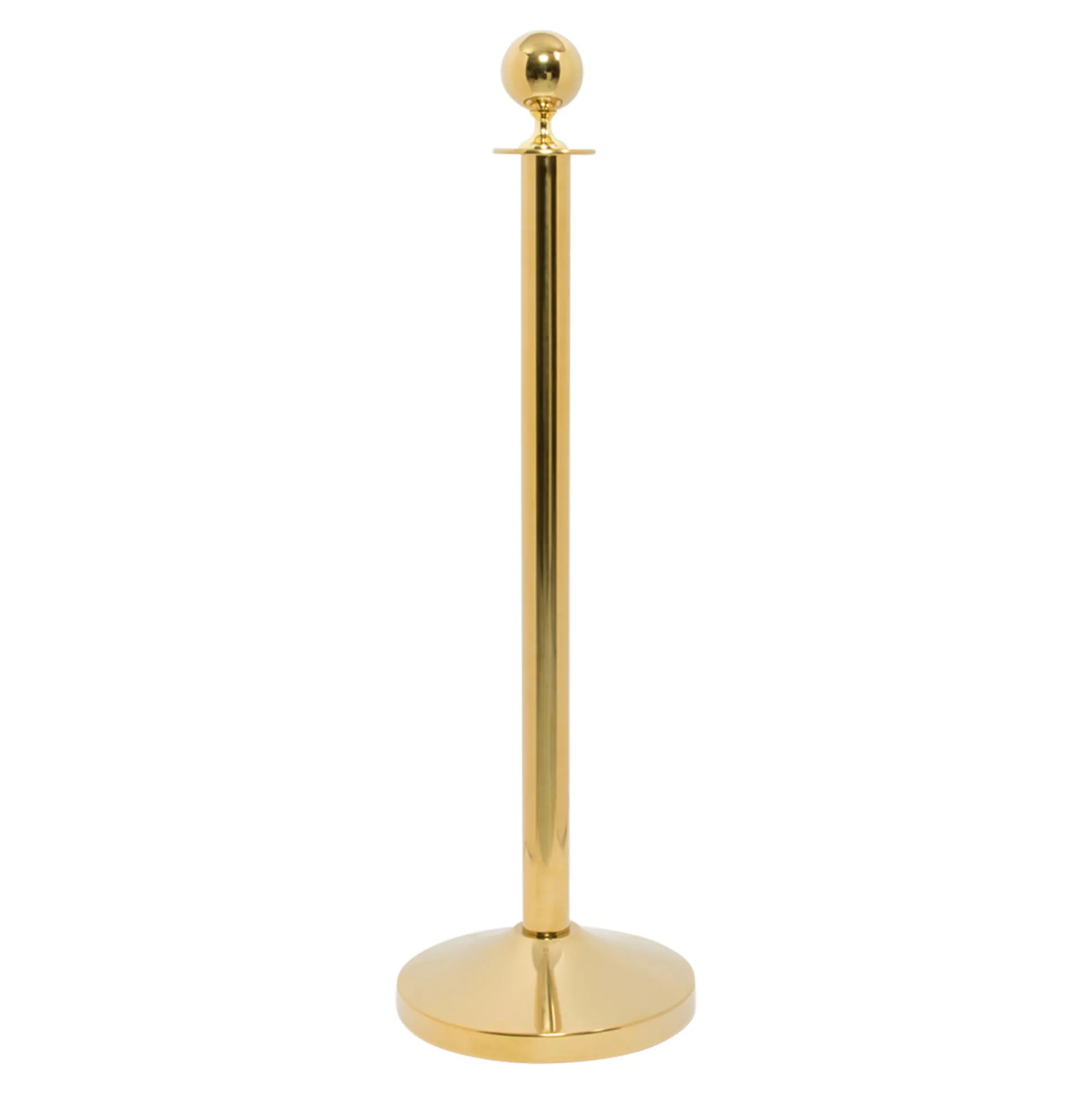 Afspærringsstolperne er fremstillet i poleret rustfrit stål med en guld finish, der gør dem vejrbestandige og egnet til både indendørs og udendørs brug. Sættet leveres med letvægtsfødder, der beskytter gulvet og sikrer stabilitet.