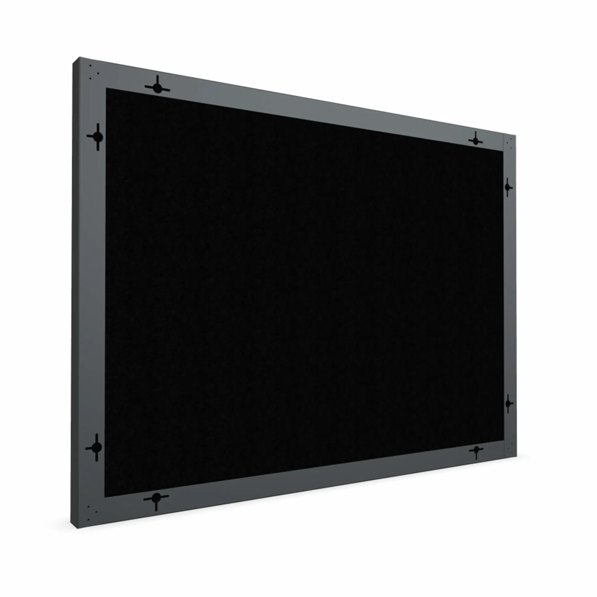 Akustiktavlen har en sort ramme, og fås enten med en hvid eller sort akustikdug. Ønsker du andre farver så kontakt vores kundeservice for at høre om dine muligheder.