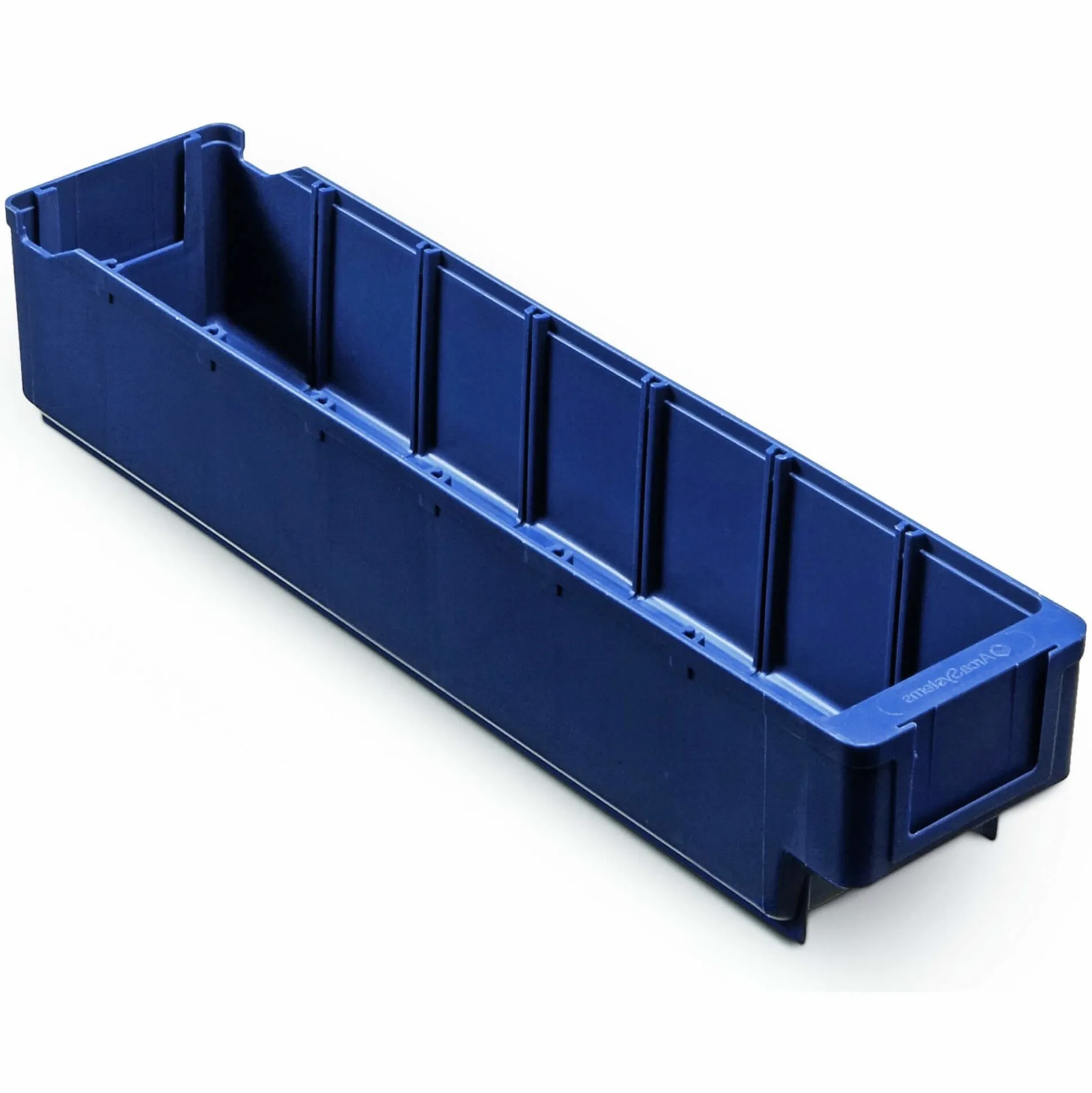 ArcaSystems lagerskuffe i blå. Med gribebakker bagpå, så skufferne kan hænge i hylderne. Udført i slagfast plast. Passer med 10 lagerskuffer på en 100 cm. hylde. (model 4532)