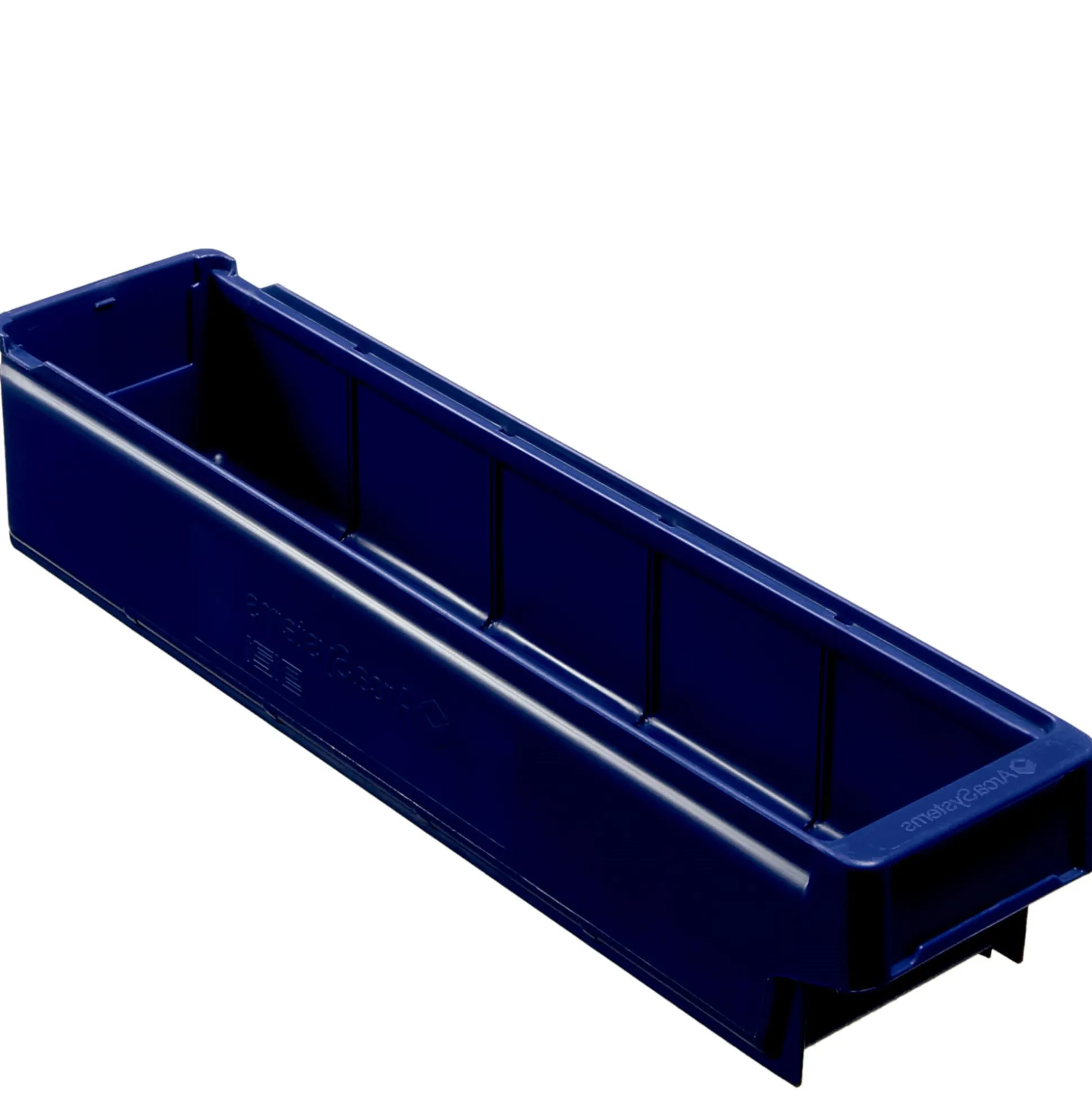ArcaSystems lagerskuffe i blå. Med gribebakker bagpå, så skufferne kan hænge i hylderne. Udført i slagfast plast. Passer med 8 lagerskuffer på en 100 cm. hylde. (model 9121)