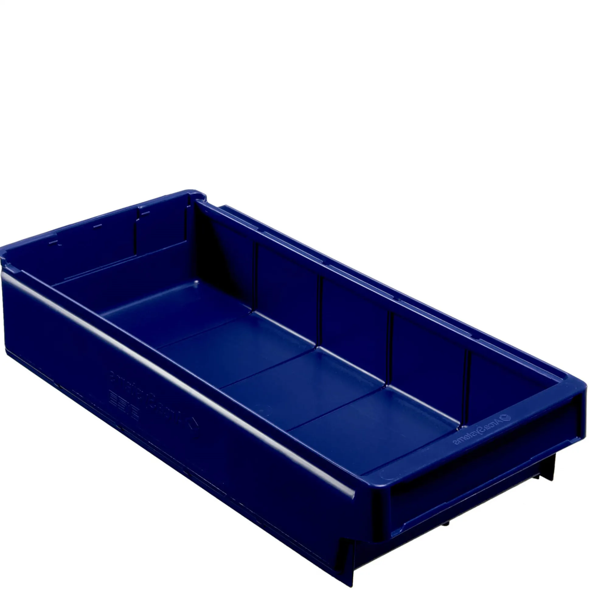 ArcaSystems lagerskuffe i blå. Med gribebakker bagpå, så skufferne kan hænge i hylderne. Udført i slagfast plast. Passer med 4 lagerskuffer på en 100 cm. hylde. (model 9123)