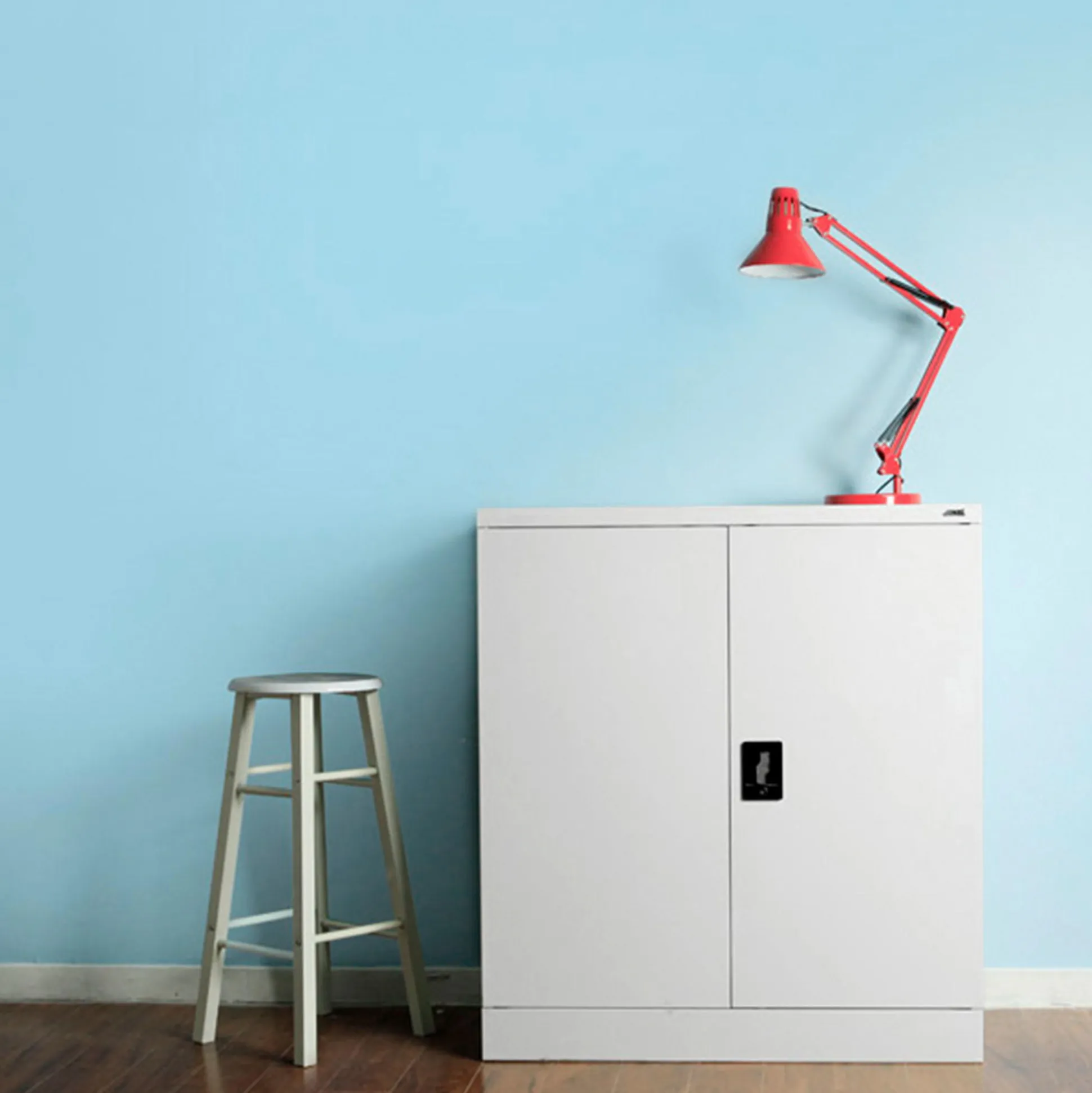 Det viste arkivskab er lakeret stål i lysegrå og måler 45x103x103h cm