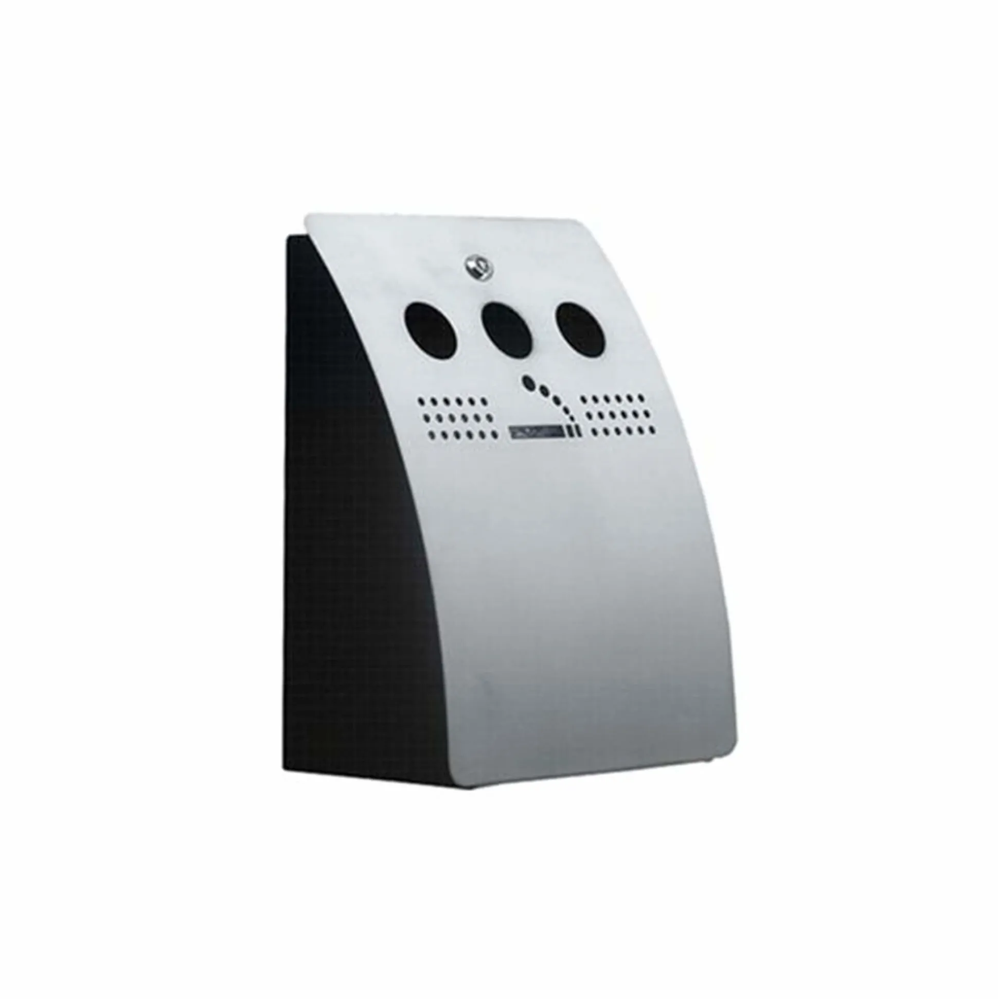 Askebæger i børstet stål og pænt design til montering på væg. Udført i galvaniseret stål, med låsbar frontplade i børstet rustfrit stål. Let at tømme og konstrueret på en måde, der reducerer udvikling af røg.