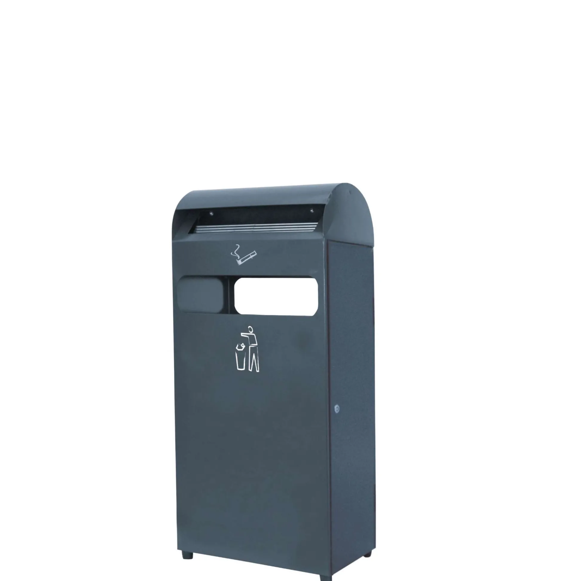 Stort askebæger og affaldsspand i en flot indpakning. Særdeles velegnet til placering i parkområder ved bænke og foran indgangspartiet.