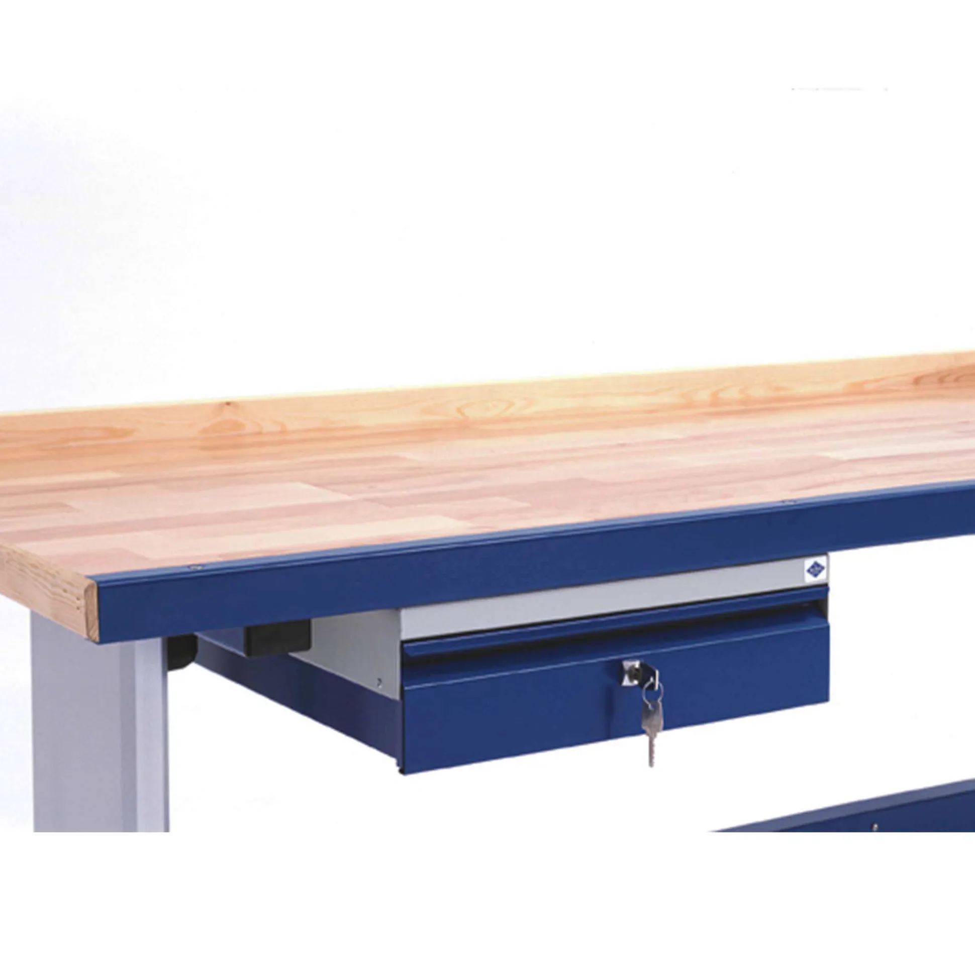 Enkelt skuffesektion til Blika værkstedsbord/filebænk. Skuffen leveres med stålkugleudtræk og cylinderlås.