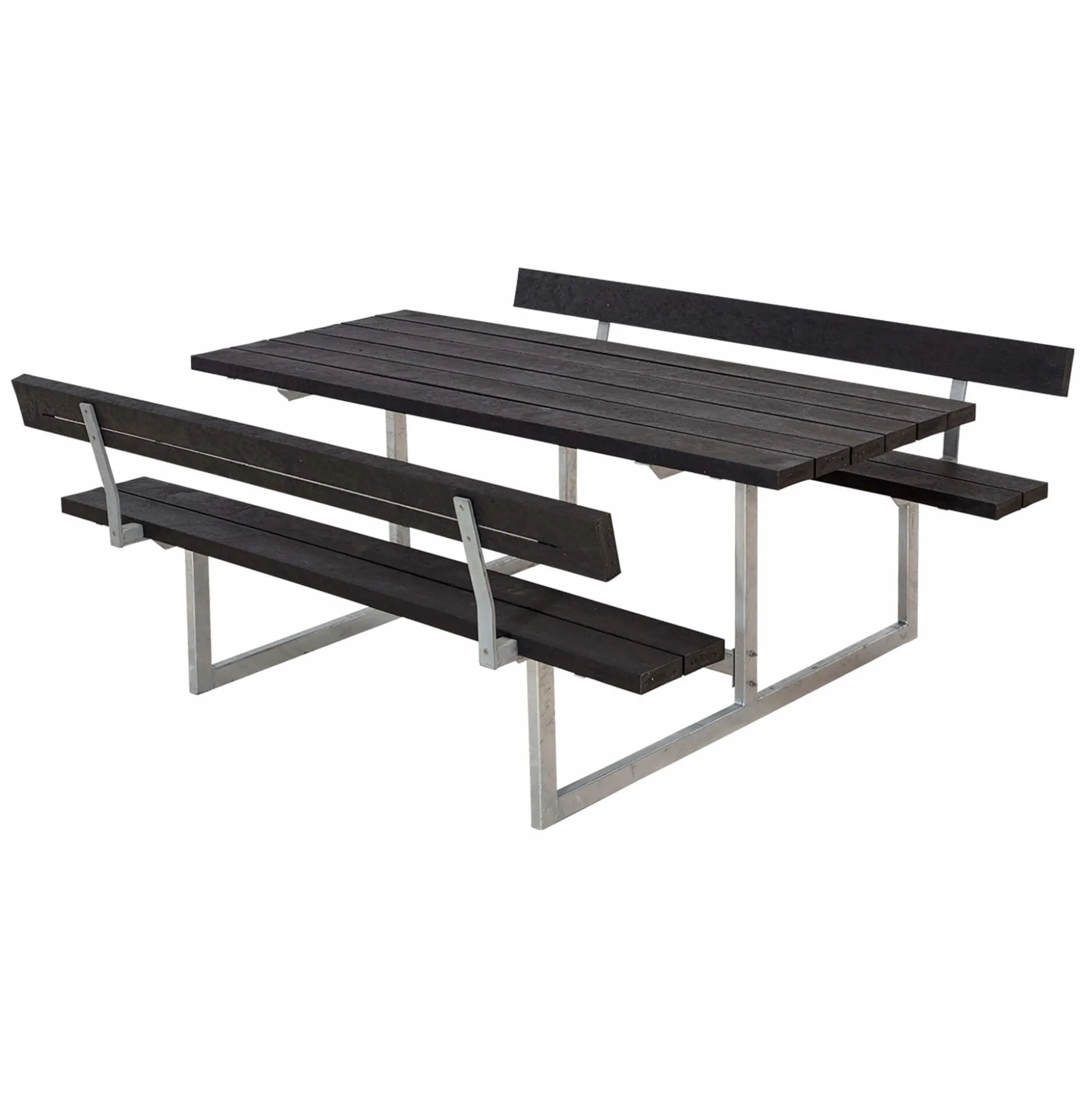 Bord-bænkesæt med ryglæn i 100% genanvendeligt sort plast til 6 personer – Stilrent og holdbart