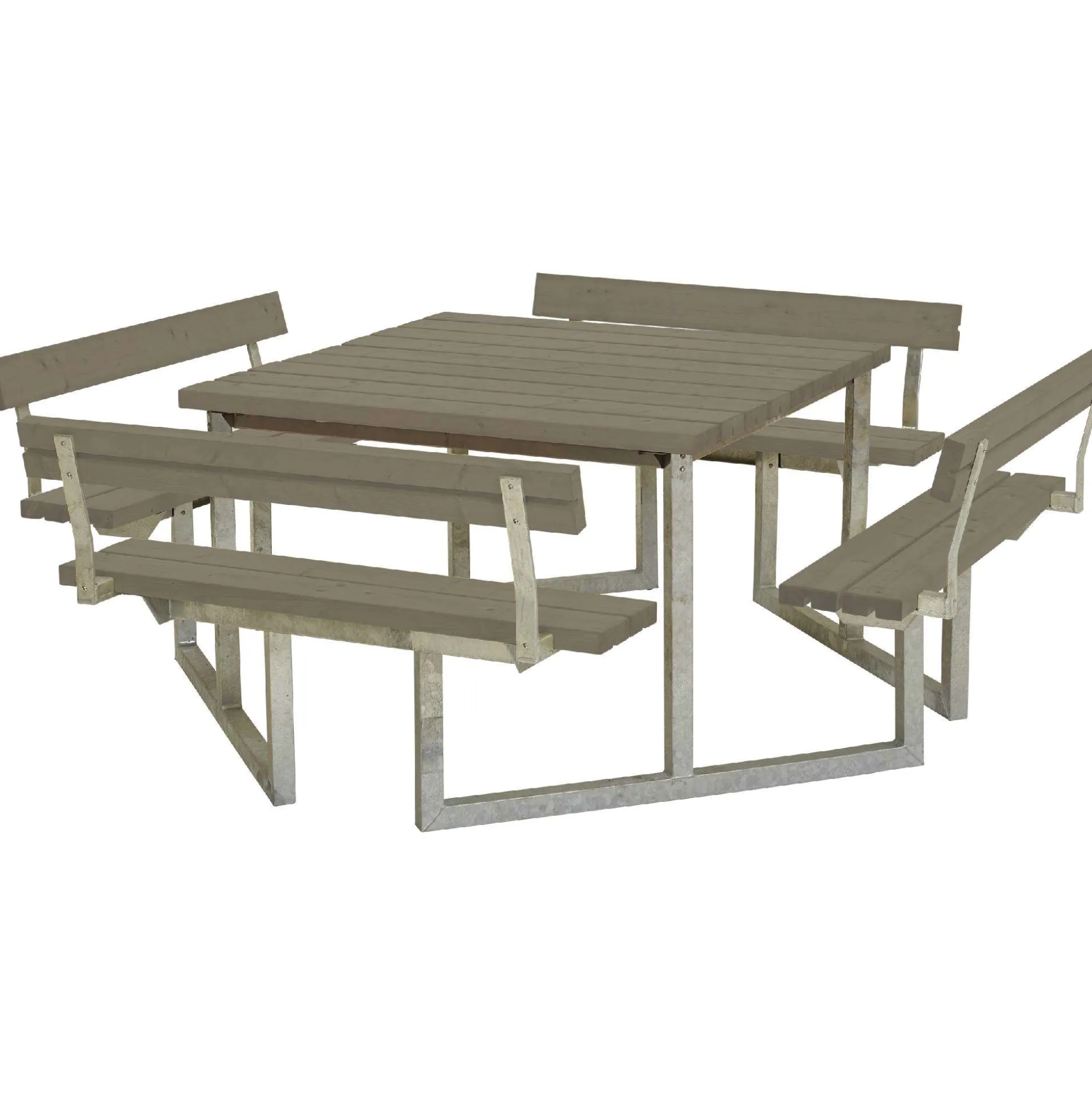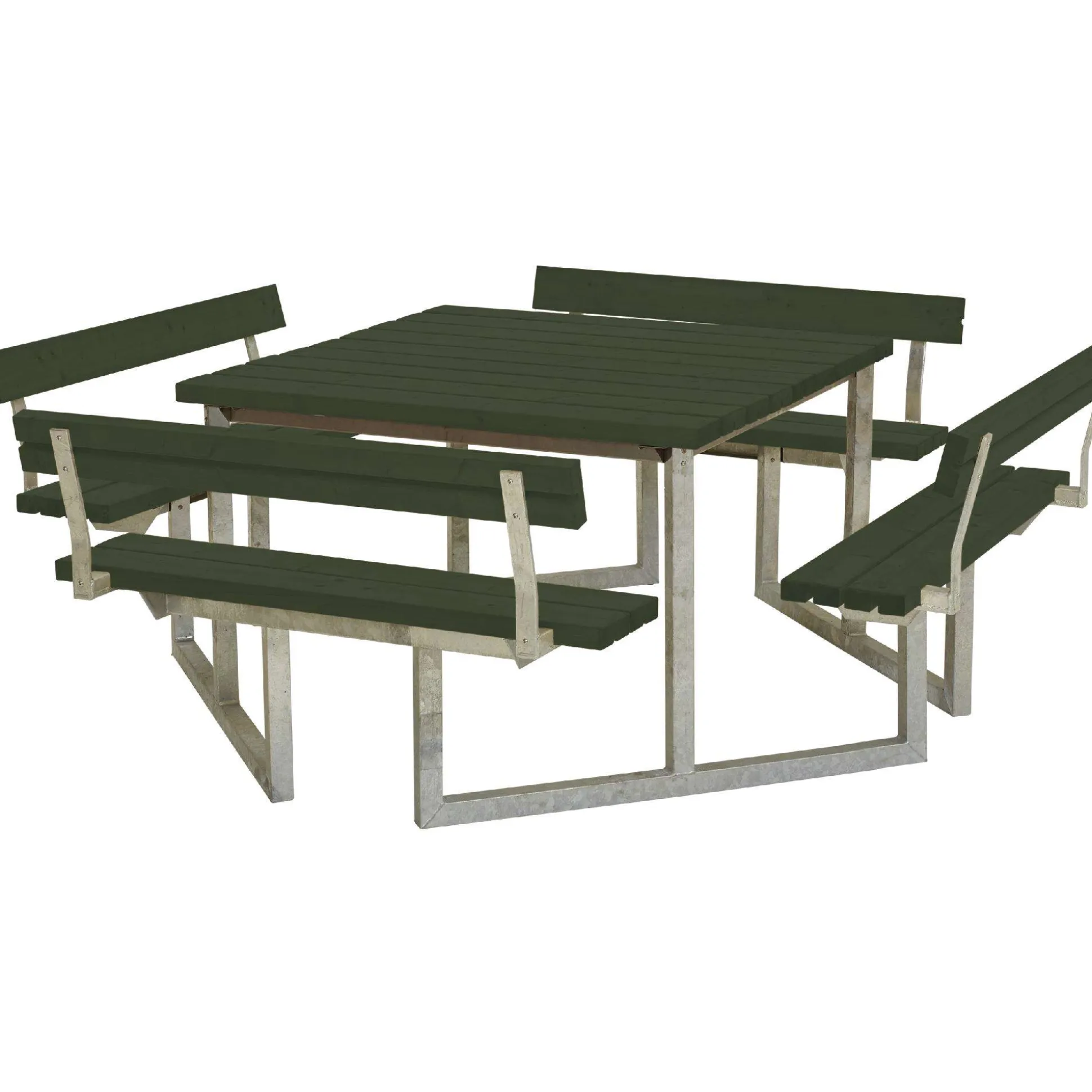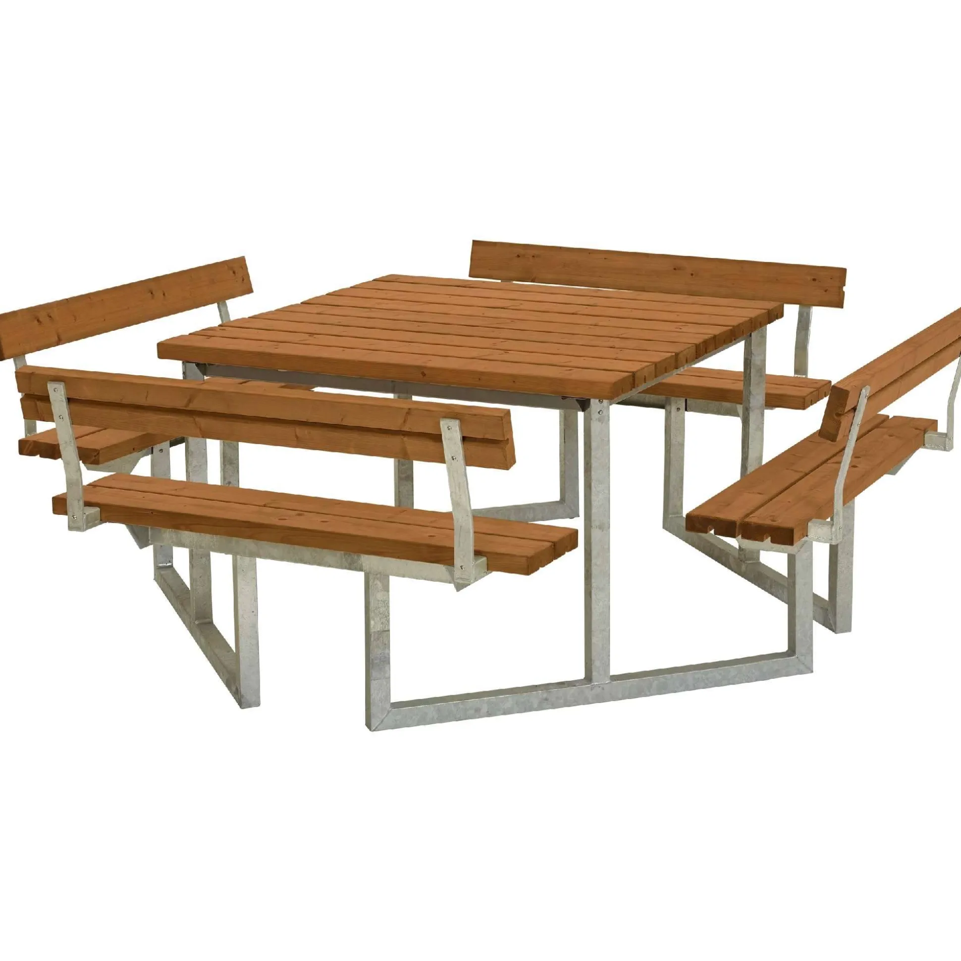 Det solide stel i varmgalvaniseret stål og de kraftige planker, gør dette bord bænkesæt særdeles stabilt.