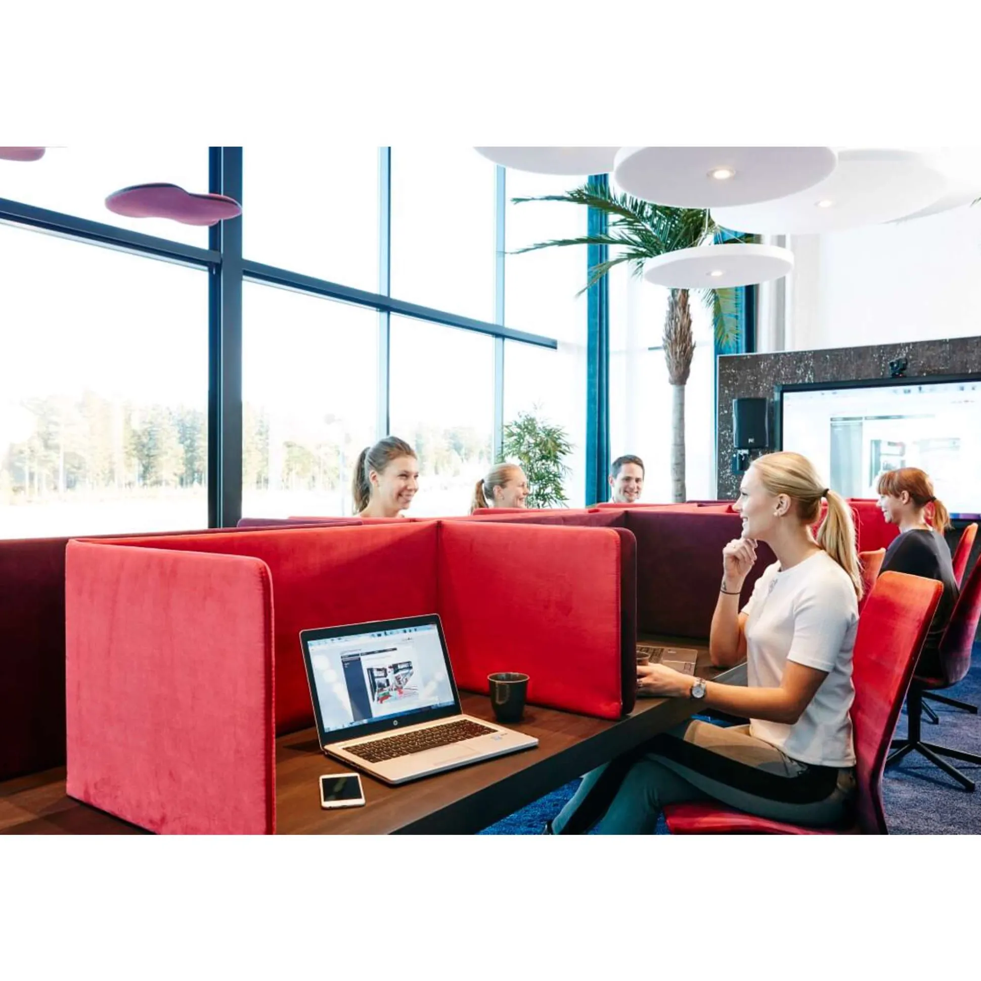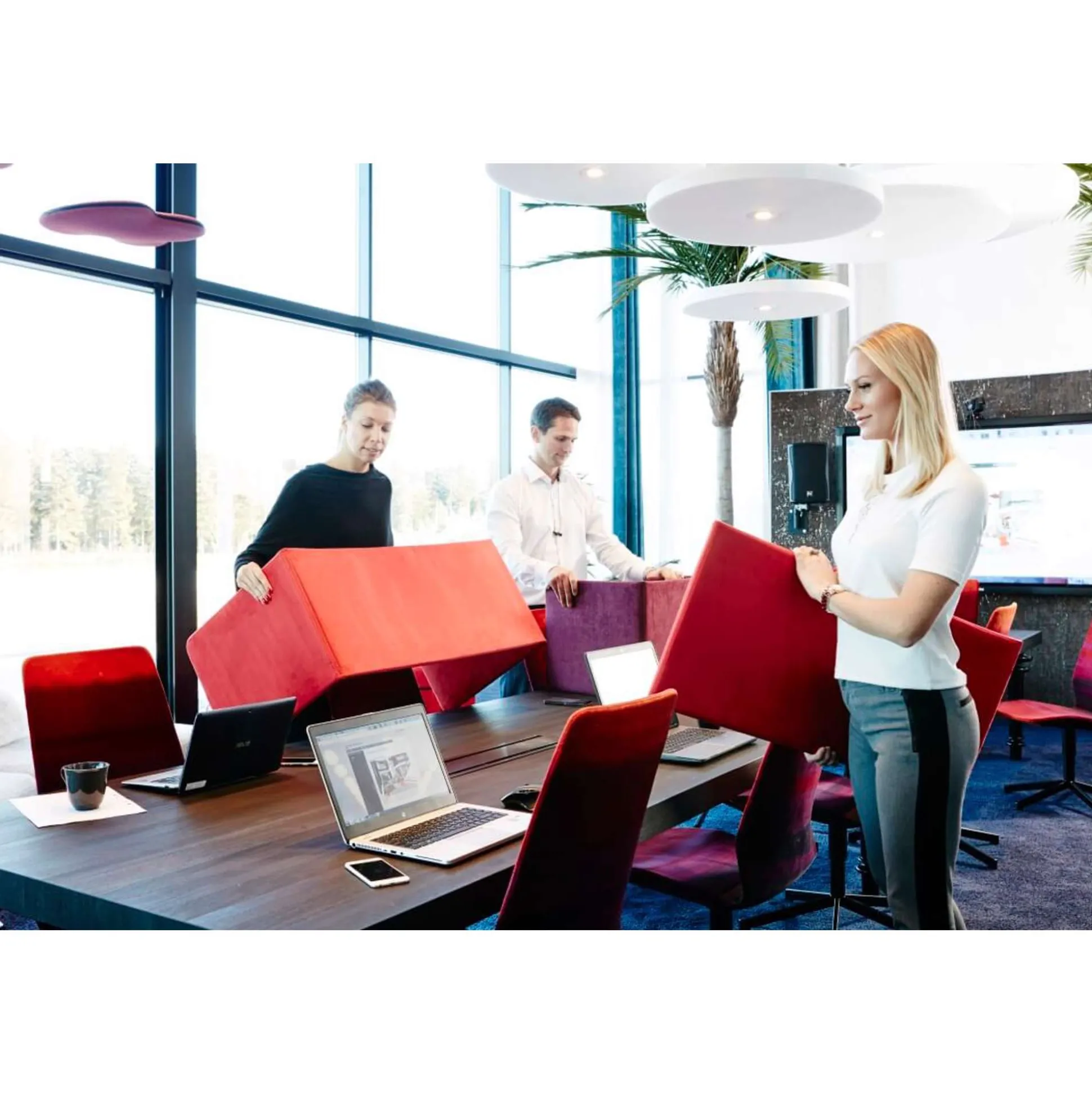 Dens udformning gør at man stadigt kan følge med i hvad der sker i lokalet, men stadigt opnår mindre støj og en bedre akustik. Dem der sidder rundt omkring vil også opleve et forbedre arbejdsmiljø da de ligeledes forstyrres mindre.