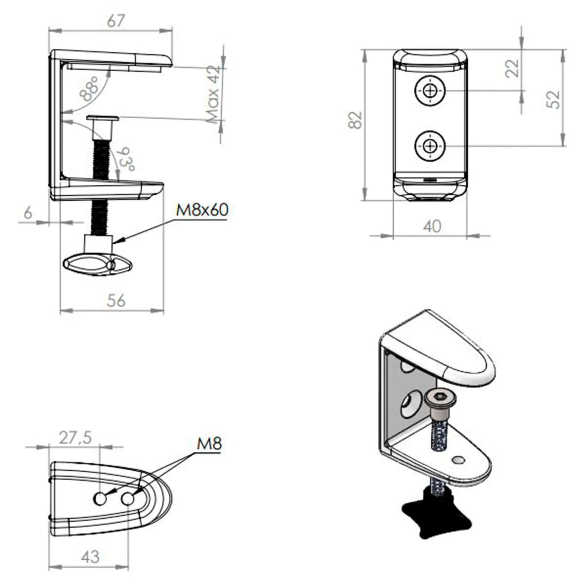 Skærmen er bygget på en lydabsorberende kerne på 30 mm og 5 mm. med skumlamineret tekstil på begge sider. Skærmen har afrundede hjørner med en radius på 35 mm..