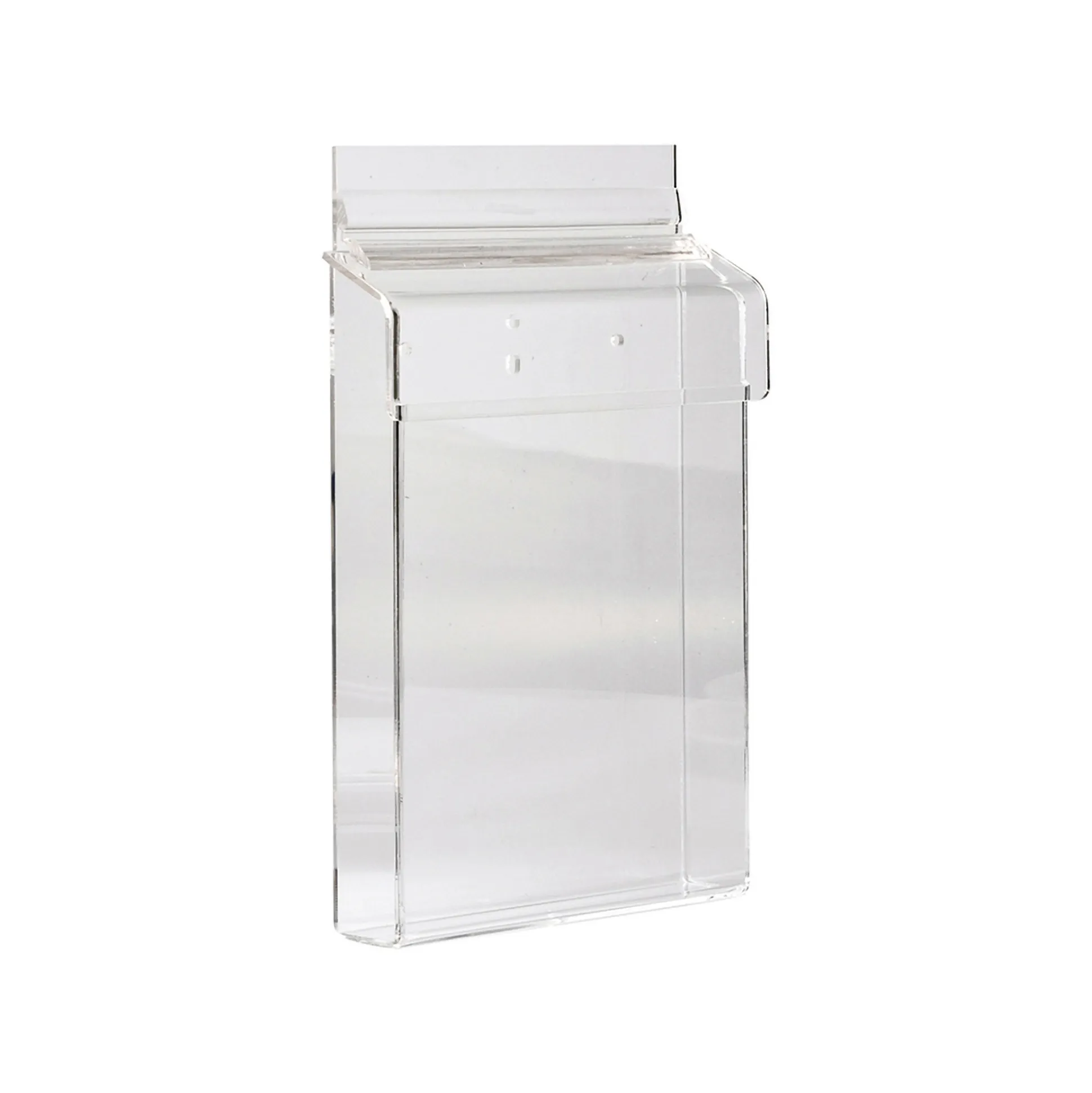 Brochureholder A6 velegnet til udendørs brug. Boksen er udført i 3 mm klar akryl, med låg der beskytter imod regn. Er lavet til vægophæng. Man kan tilkøbe ophængsbeslag som kan bruges til at boks kan hænge på gadeskilt eller bilvinduer. Indvendig mål: L 11,5 x H 14,8 x D 3 cm.