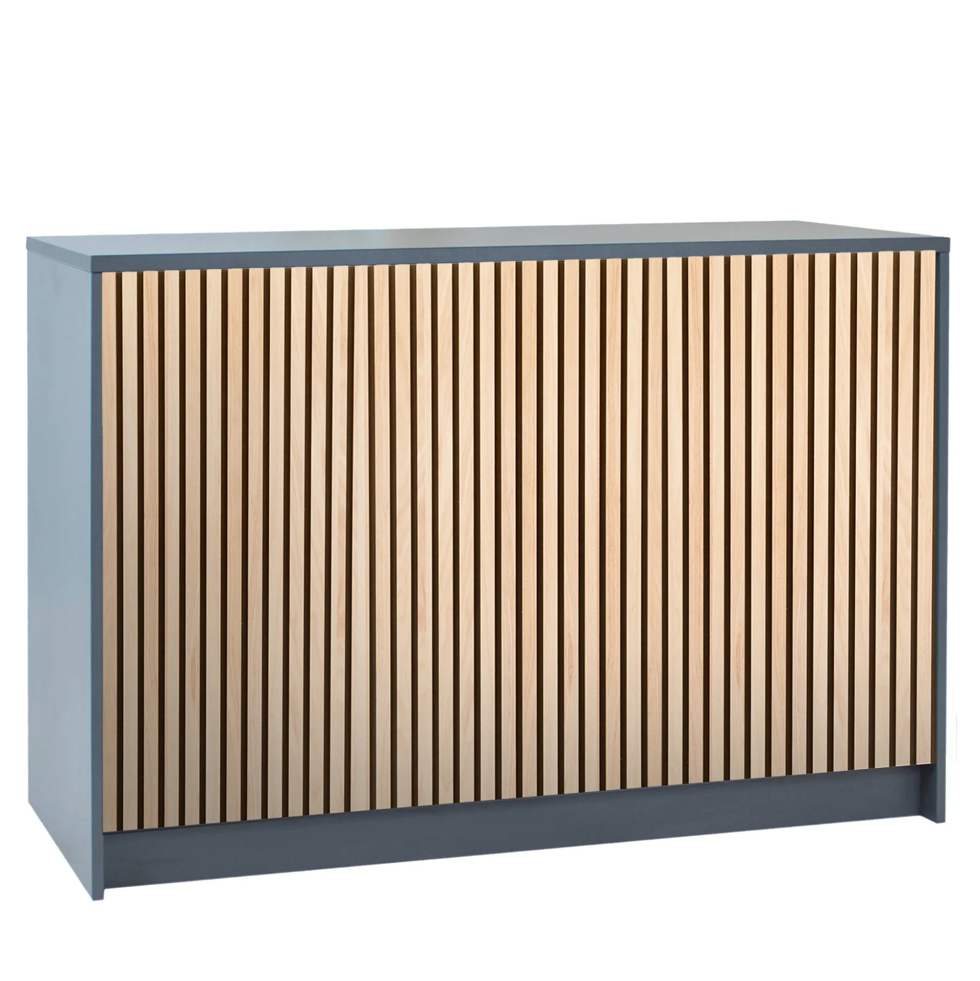 Rigtig flot kvalitets disk i antracit med front i eg akustikpanel