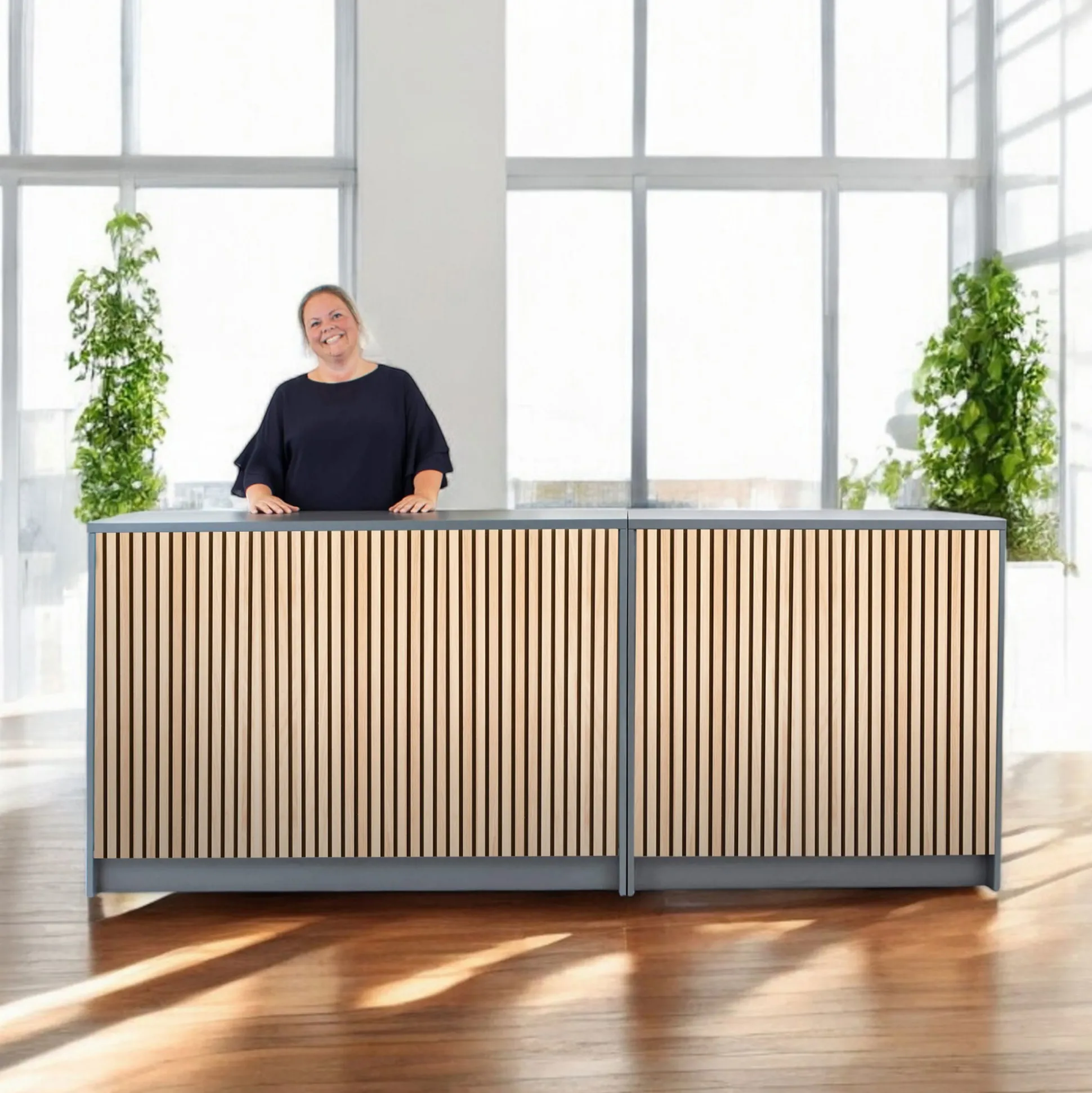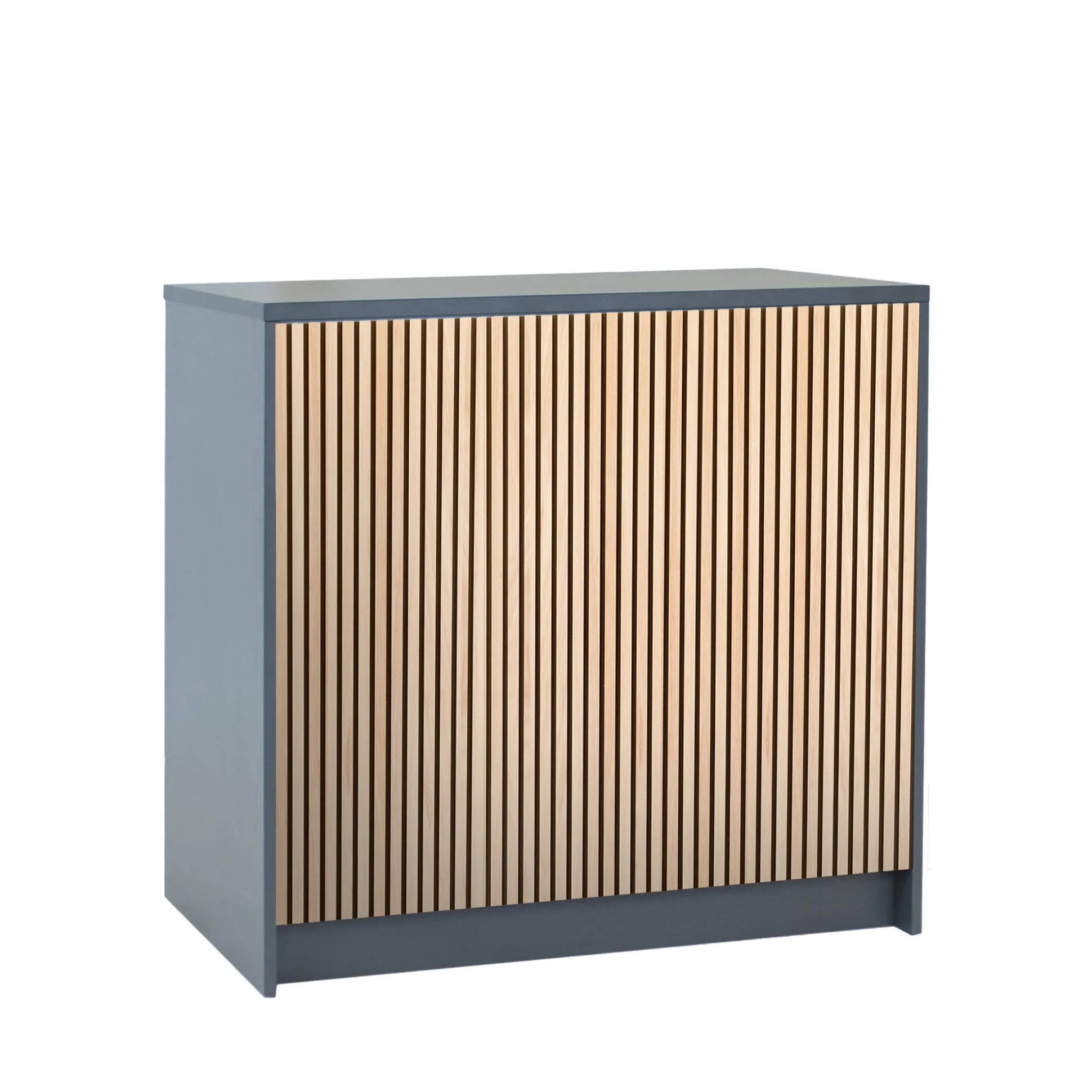 Rigtig flot kvalitets disk i antracit med front i eg akustikpanel