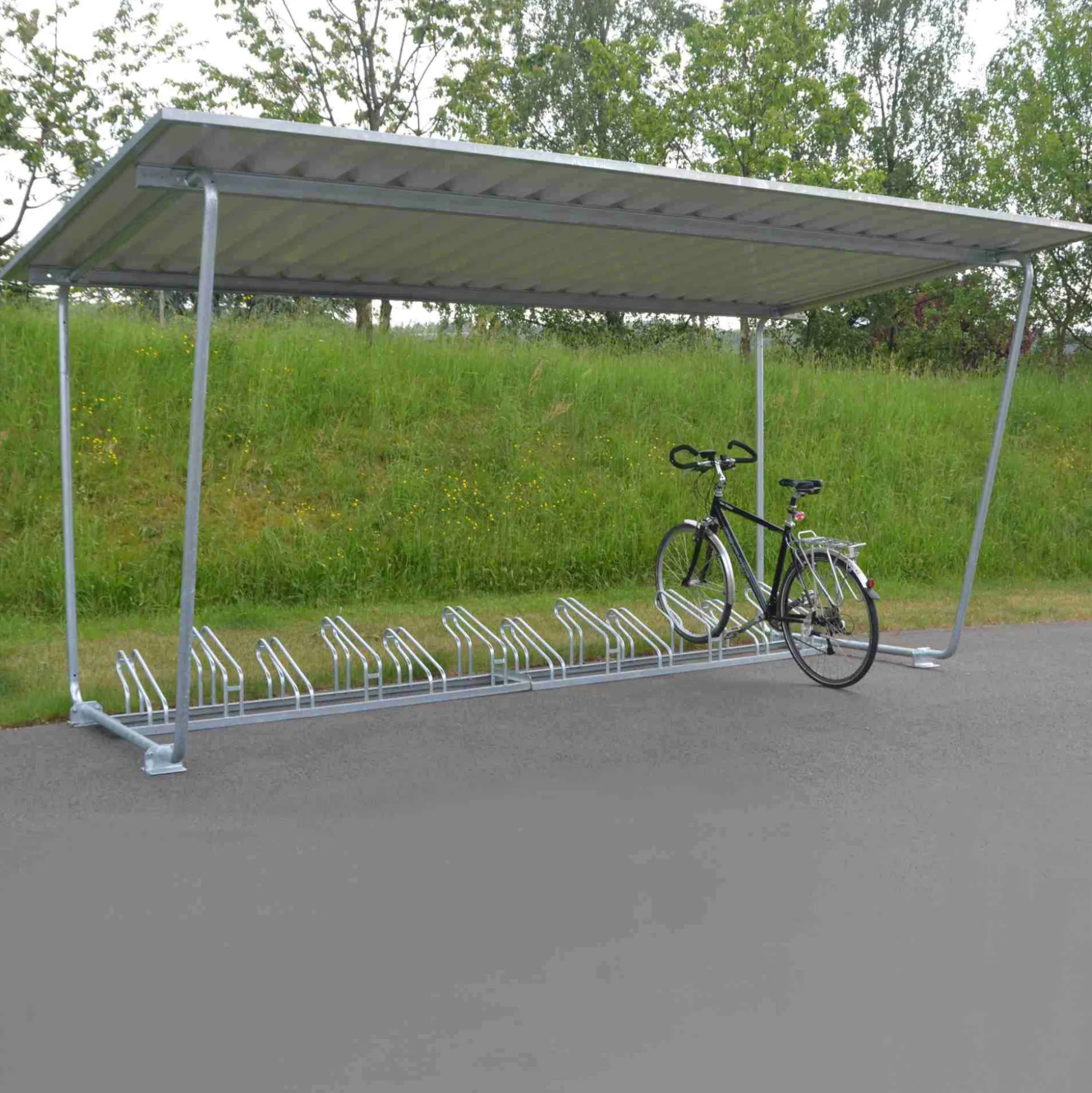 Flot og enkel overdækning til cykler udført i galvaniseret stål.
