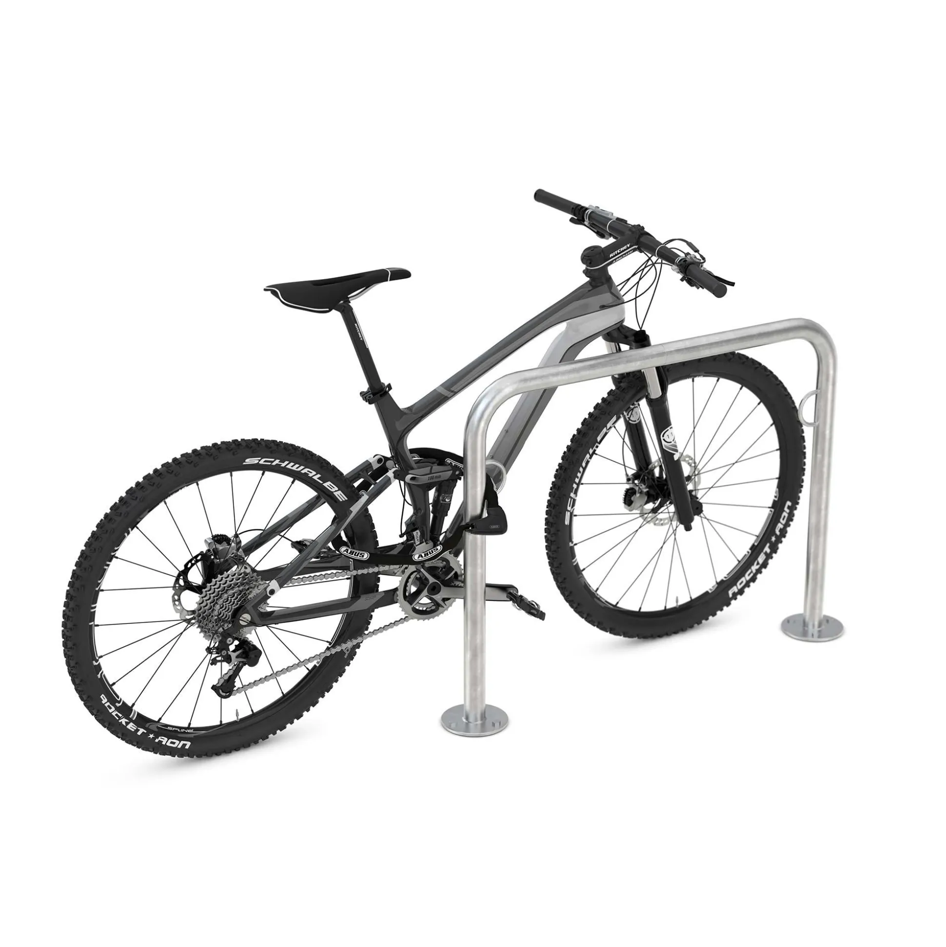 Cykelstativet fås i 3 forskellige længder og til nedstøbning eller boltning i gulv. Denne model er til nedstøbning i jord.