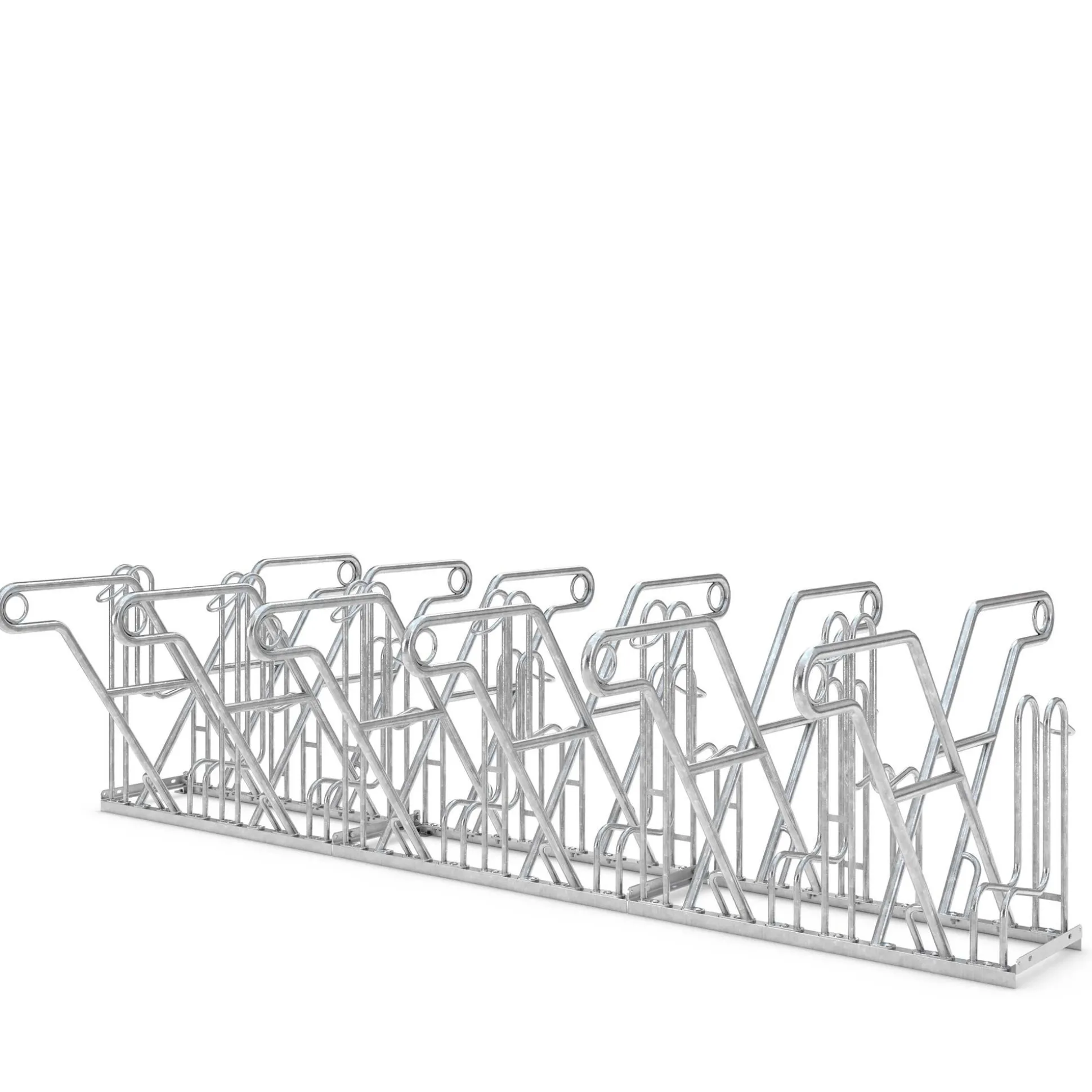 Sikkert cykelstativ med høje bøjler og støttebøjler til 12 cykler