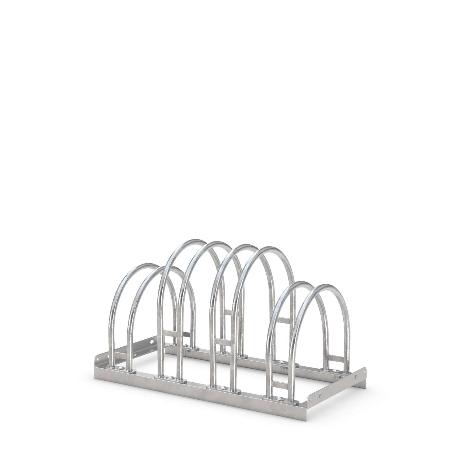 Udført i galvaniseret stål med bueformede parkeringsbøjler.