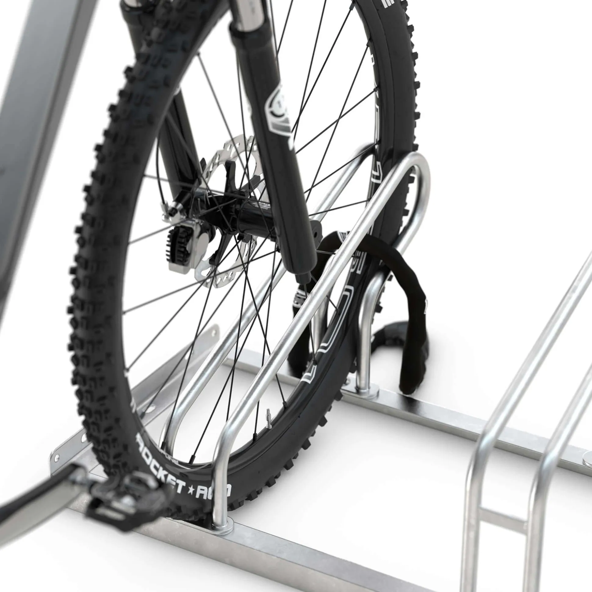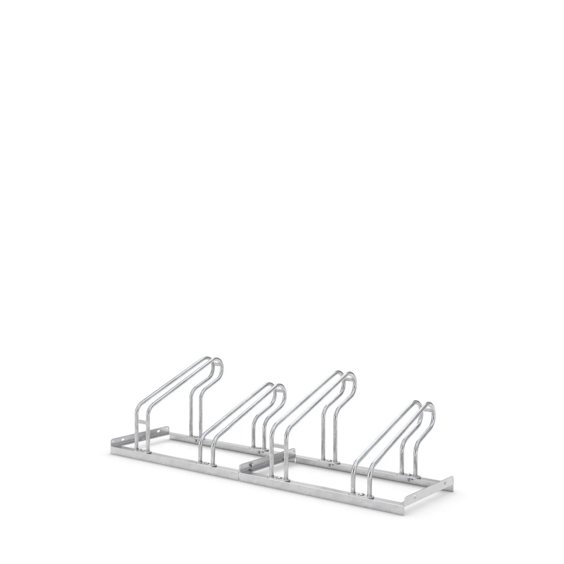 Udført i galvaniseret stål med skrå parkeringsbøjler.