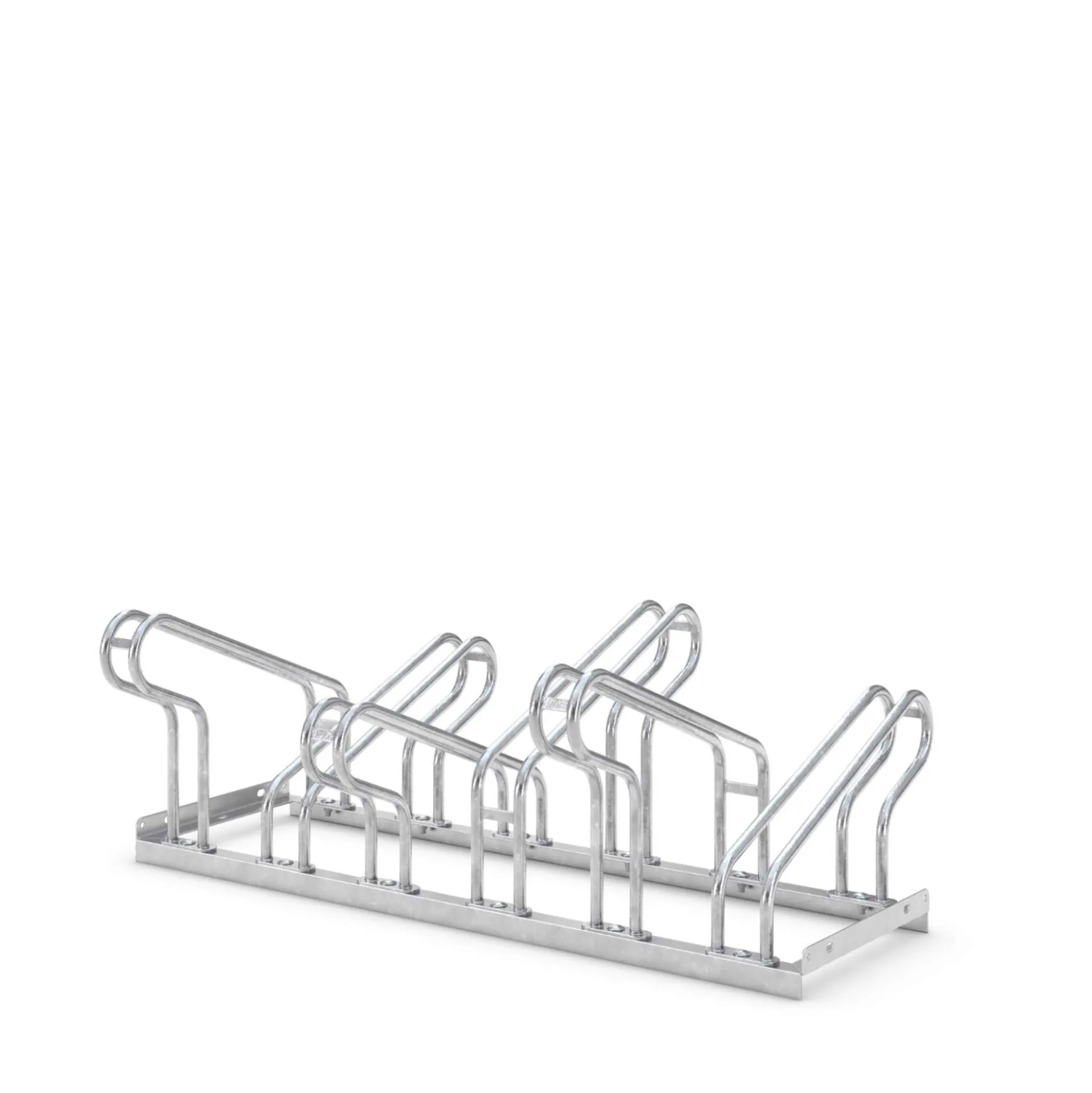 Udført i galvaniseret stål med skrå parkeringsbøjler.