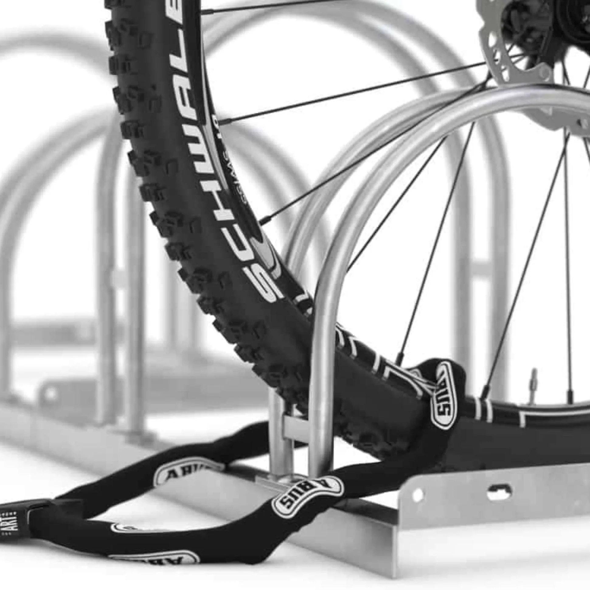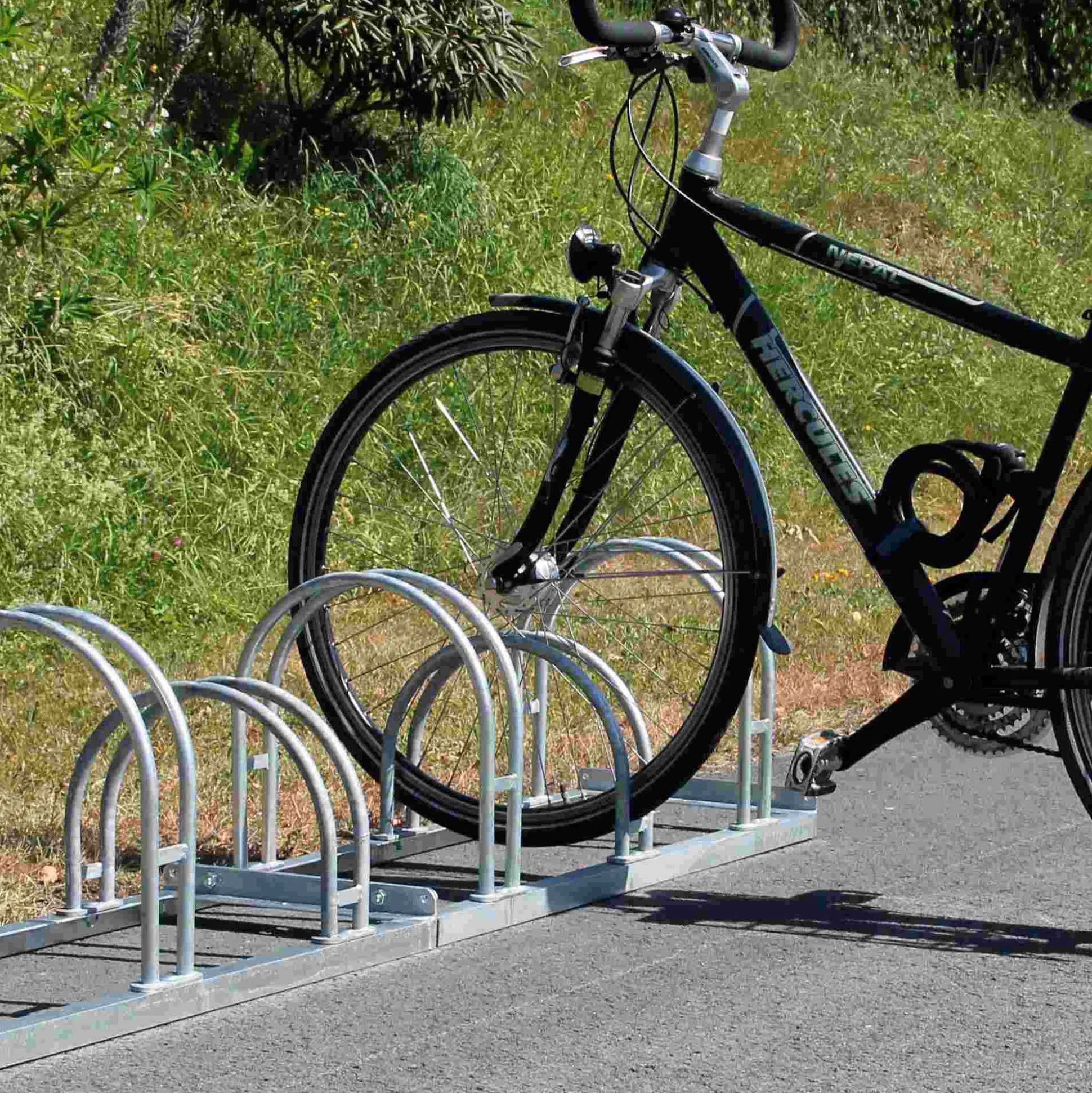 Udført i galvaniseret stål med skrå parkeringsbøjler.