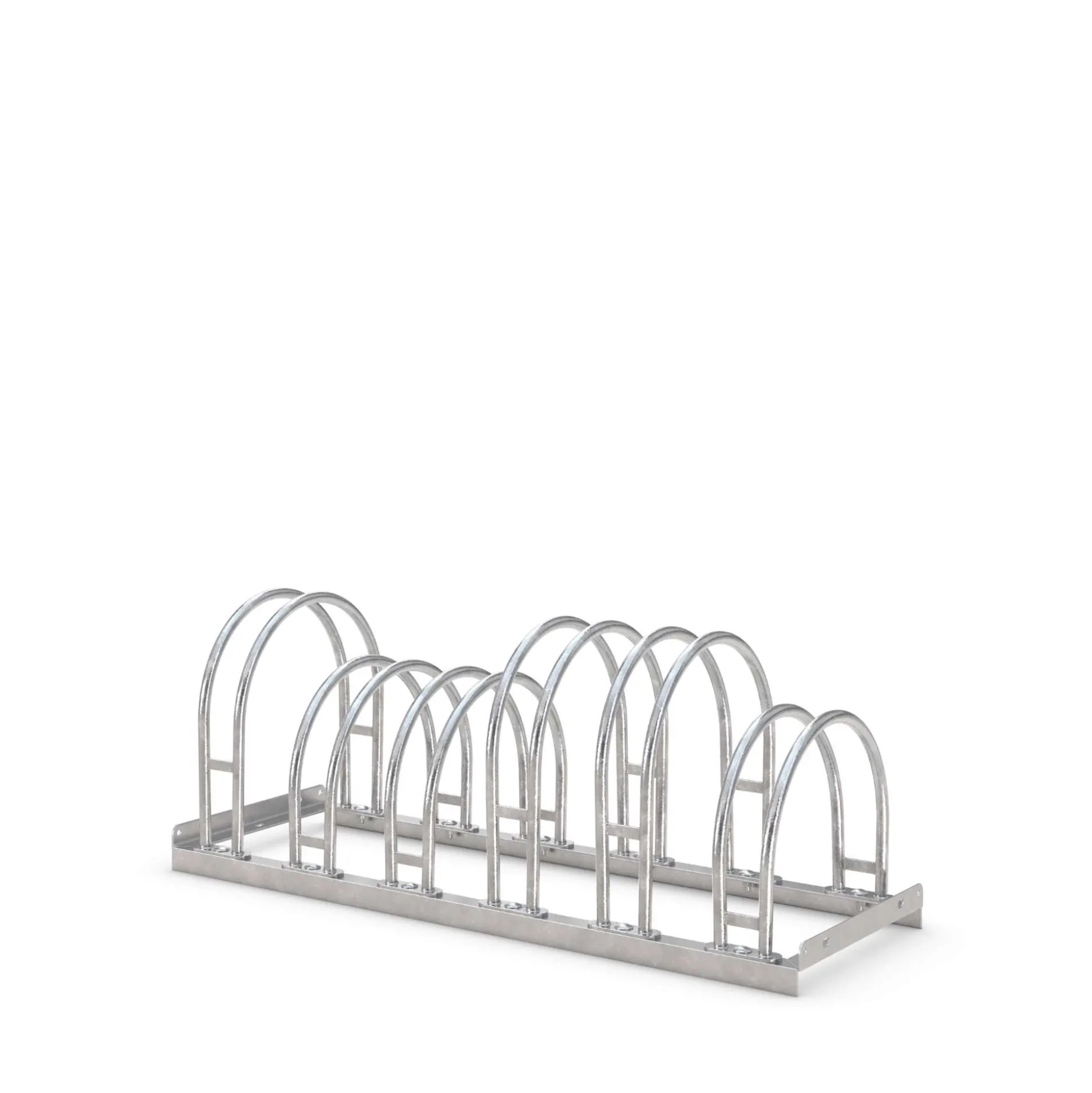 Udført i galvaniseret stål med bueformede parkeringsbøjler.