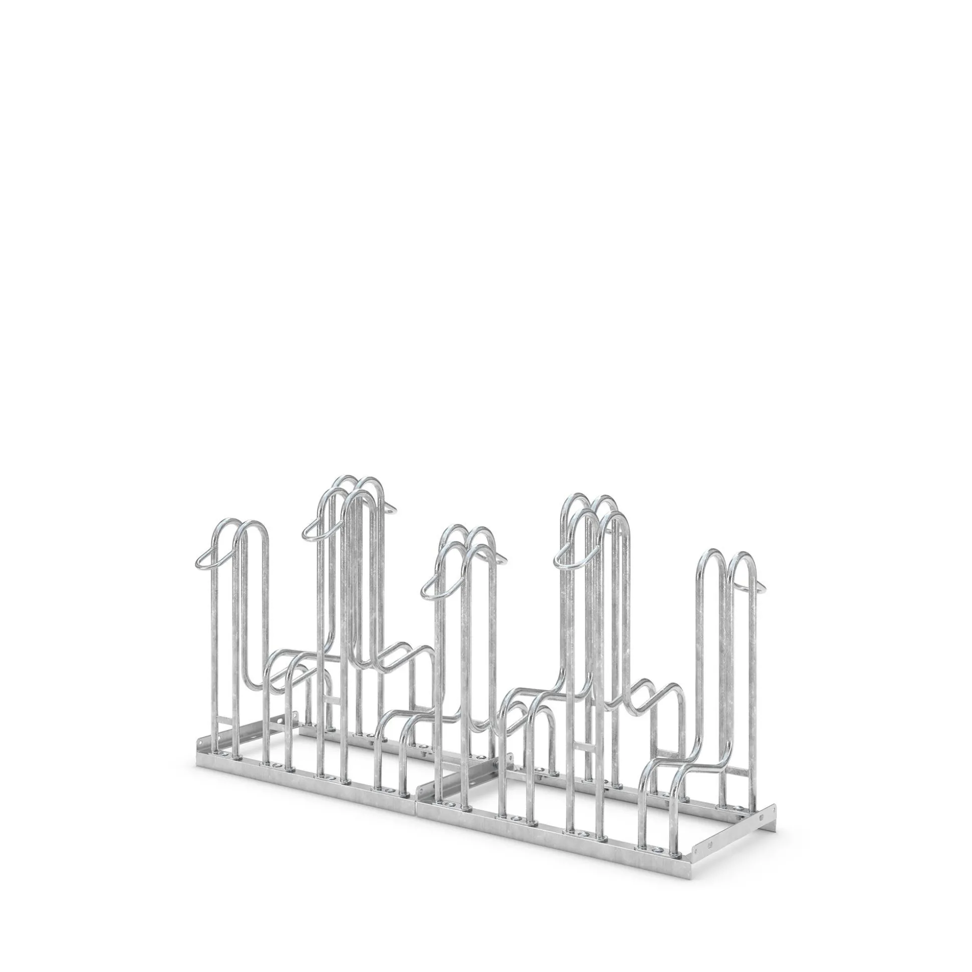 Cykelstativet er forberedt med monteringshuller, så det kan udvides med flere pladser. Kan lægges løst eller fastgøres til terræn. Beslag eller bolte til jordmontering købes separat.