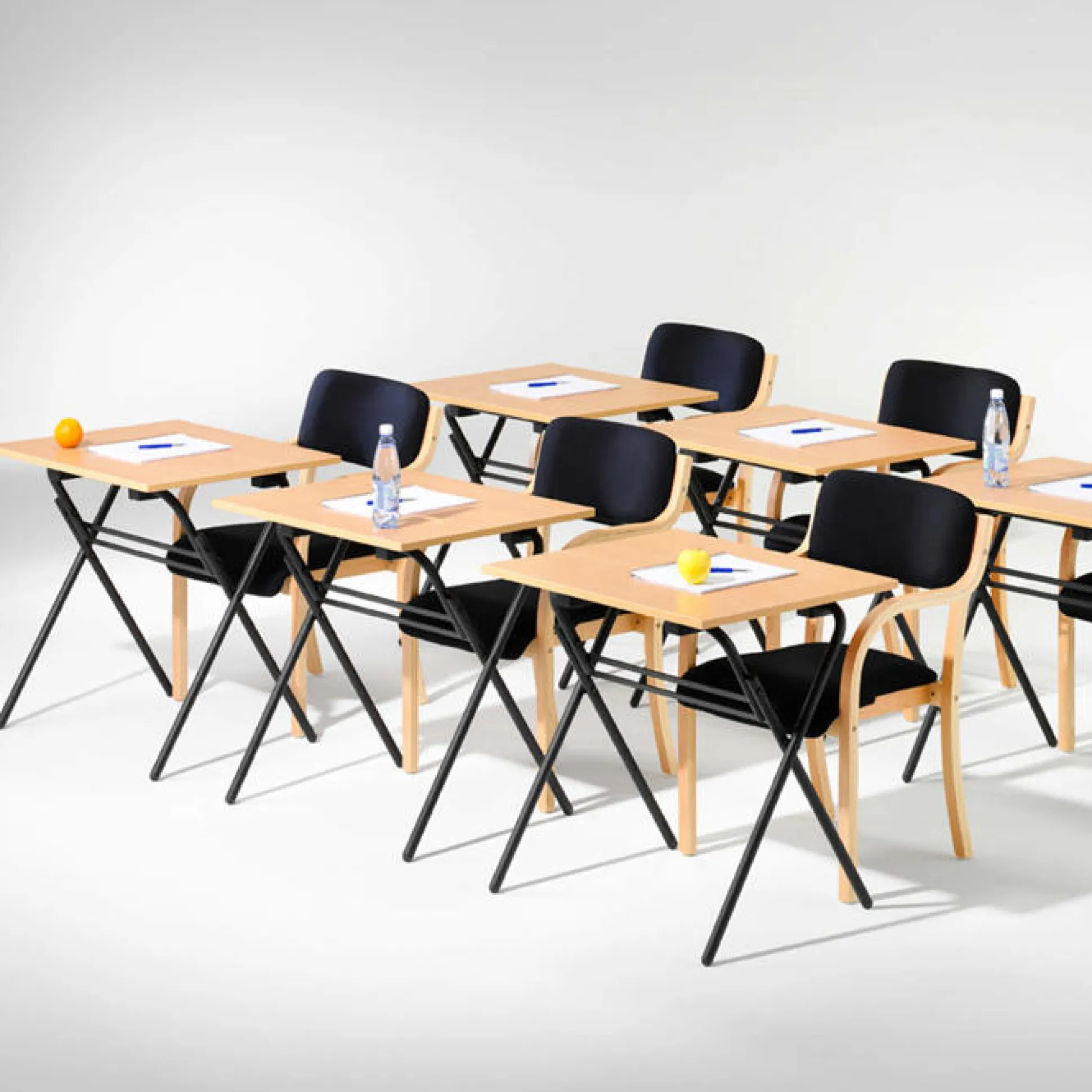 Sammenklappeligt eksamensbord 60x70x74 cm, hvilke giver mulighed for at lave en midlertidig opstilling som let kan pakkes væk og stables/opbevares. bordet er sammenklappelig og muligt at stable.