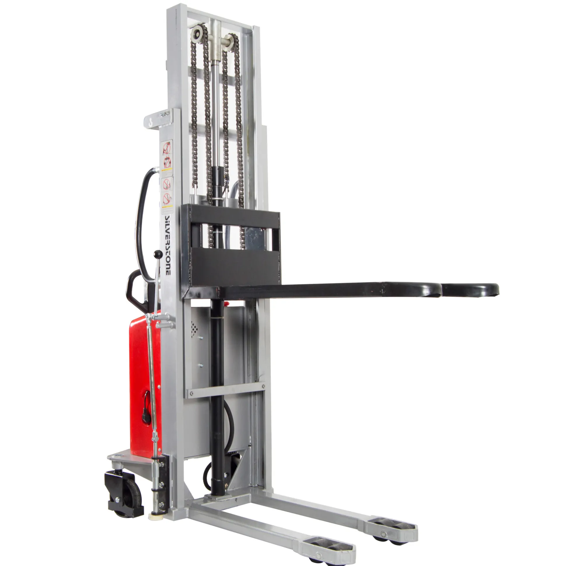Semi-elektrisk stabler til intensiv håndtering og kontinuerlig løft. Løftehøjde på 3500 mm. Løftekapacitet: 1000 kg. Kompakt design, hvilket giver en lille venderadius. Hurtigt løft og sænkning hastigheder. Nem og smidig styring gør stableren sikker og bekvem at bruge.
