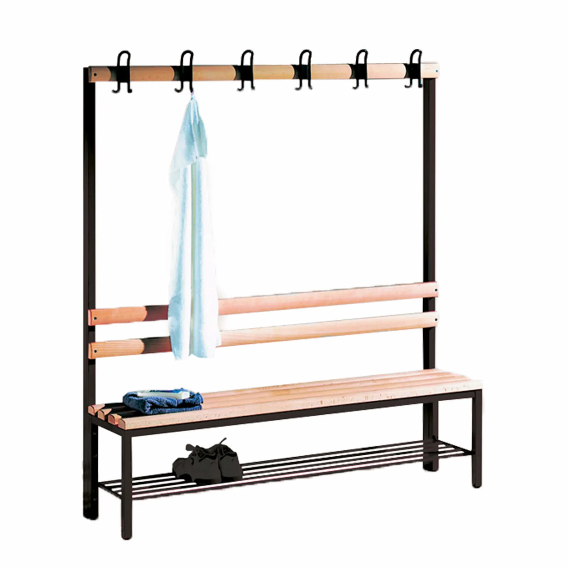 Bænken leveres som standard med bænksæder i hårdt træ, som er afrundet i toppen for bedre siddekomfort. Alle ben er med stilleskruer, så bænken ikke står og vipper, anset underlaget. Standardfarve: sortgrå. Leveres samlet.