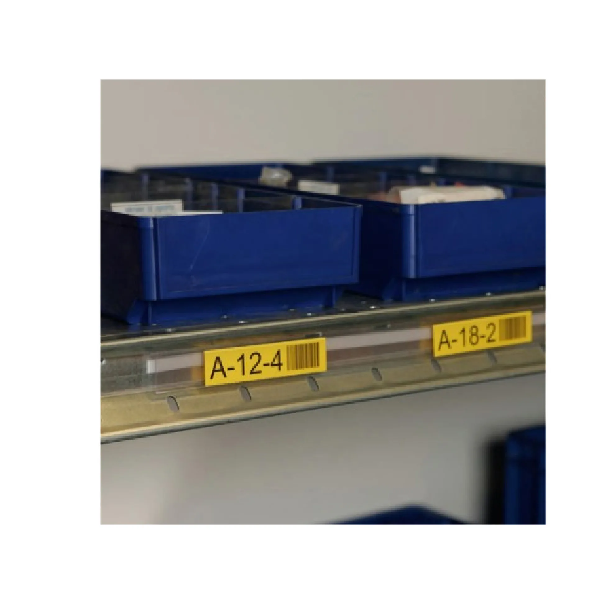 Klæbende etiketholder til hylder. Med skumtape. Transparant. Lige. Med 5mm flap. 940×26 mm. Pakning á 50 stk. Klar holder hvori der kan indsættes etiketter.