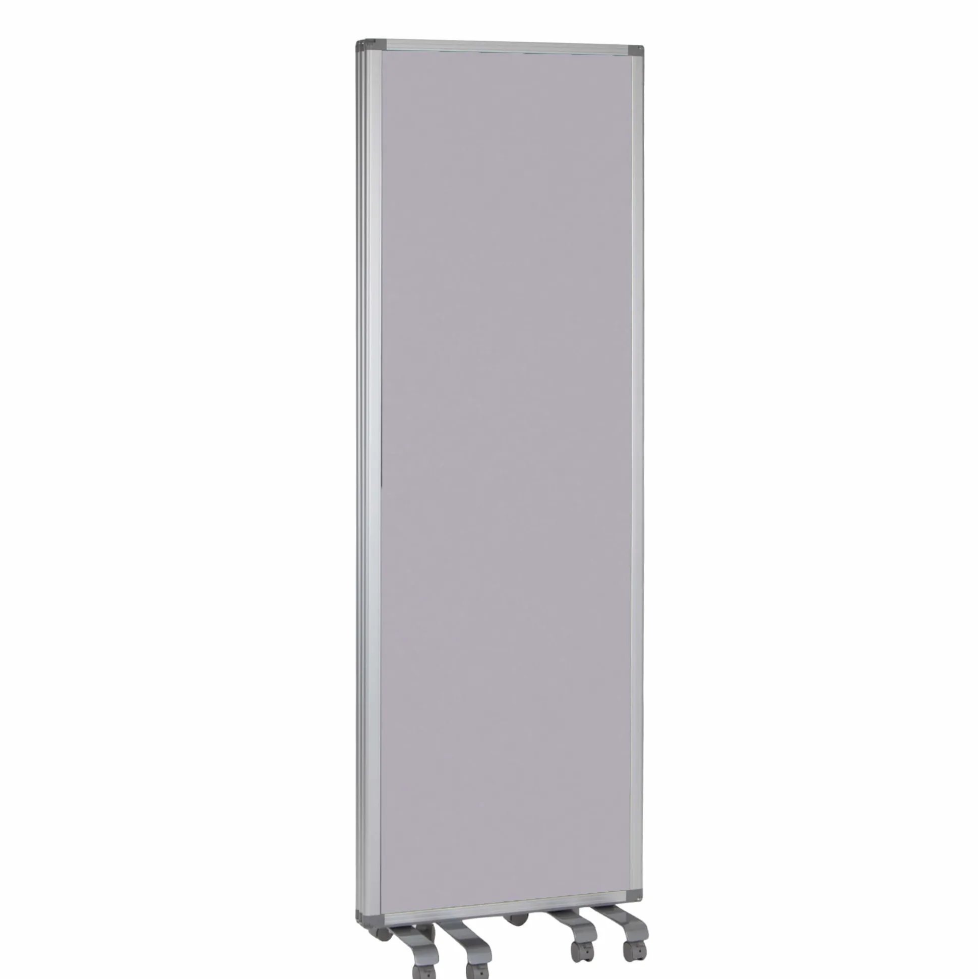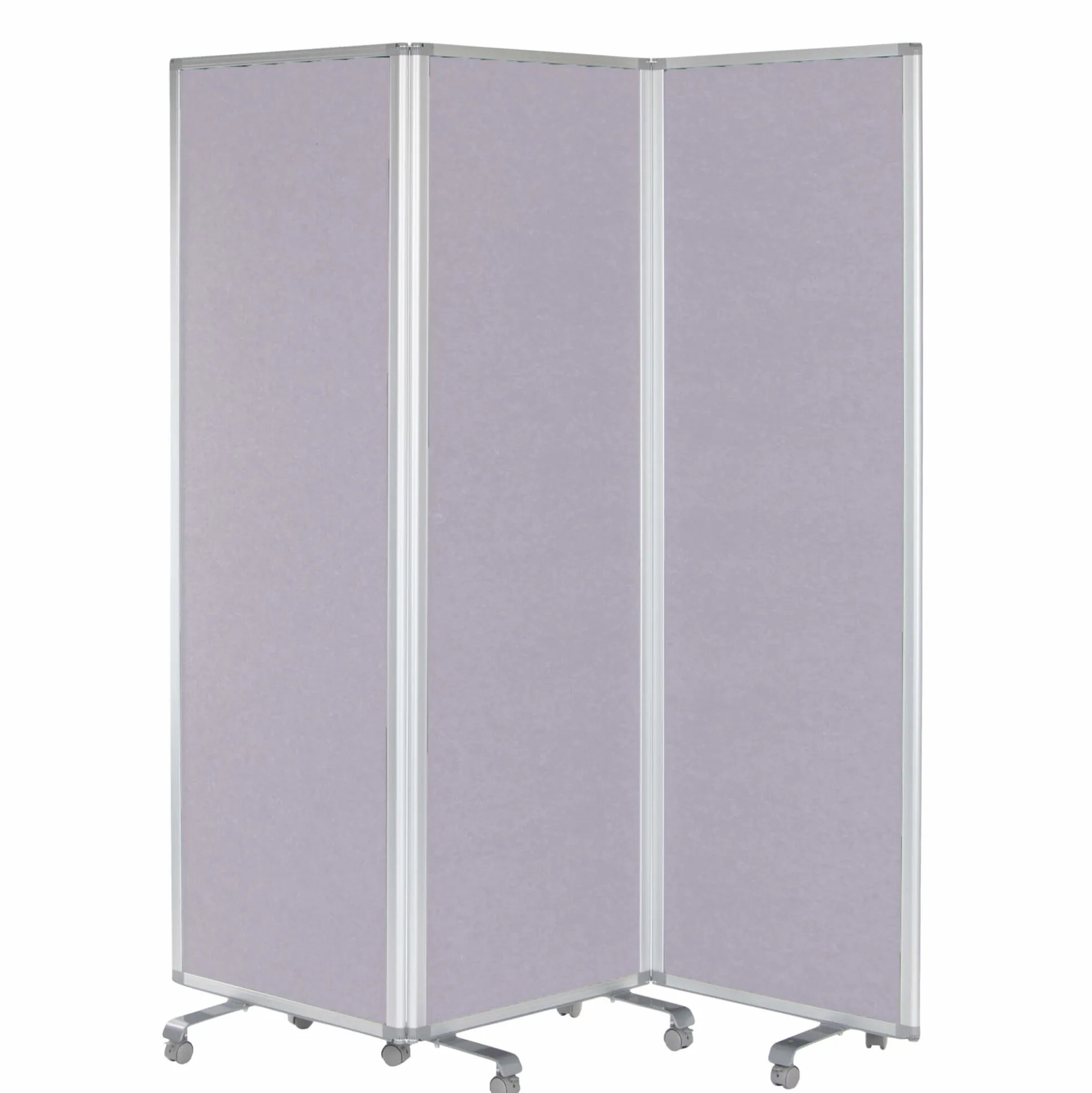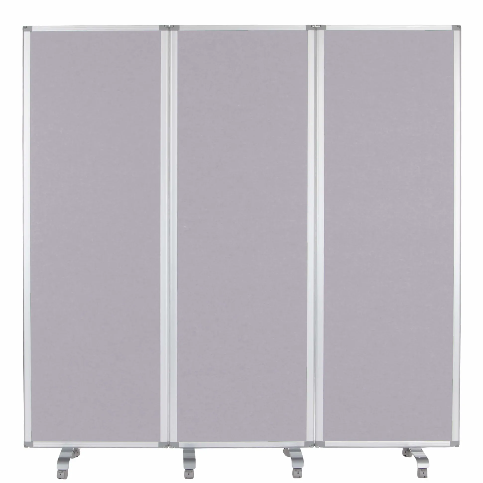 Smart mobil foldeskærm på hjul bestående af 3 fag med alu ramme og en samlet størrelse på 180x180h cm. Foldeskærmen har lydabsorberende egenskaber med en 8 mm grå PET kerne, og vil derfor både afskærme og forbedre akustikken.