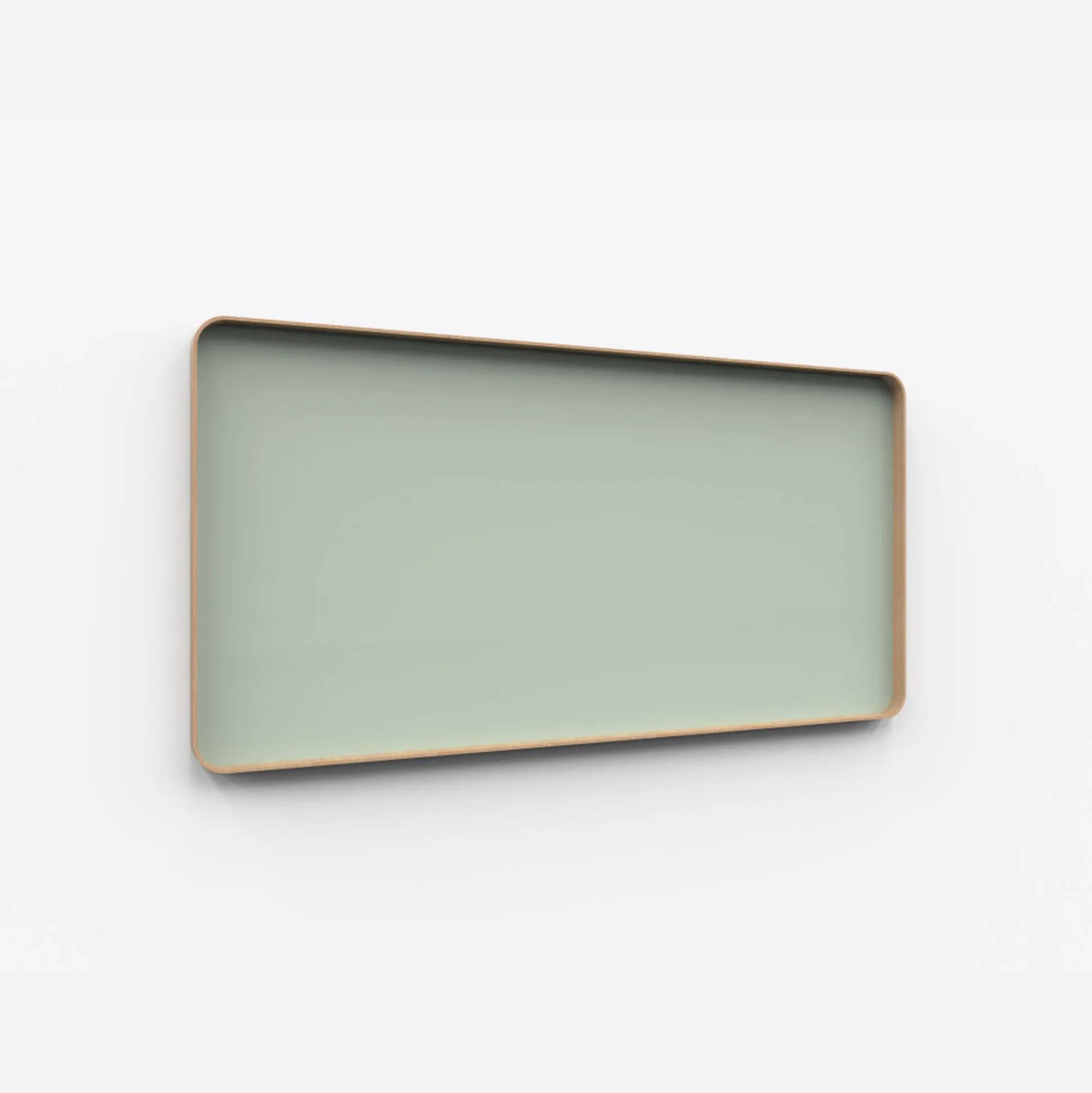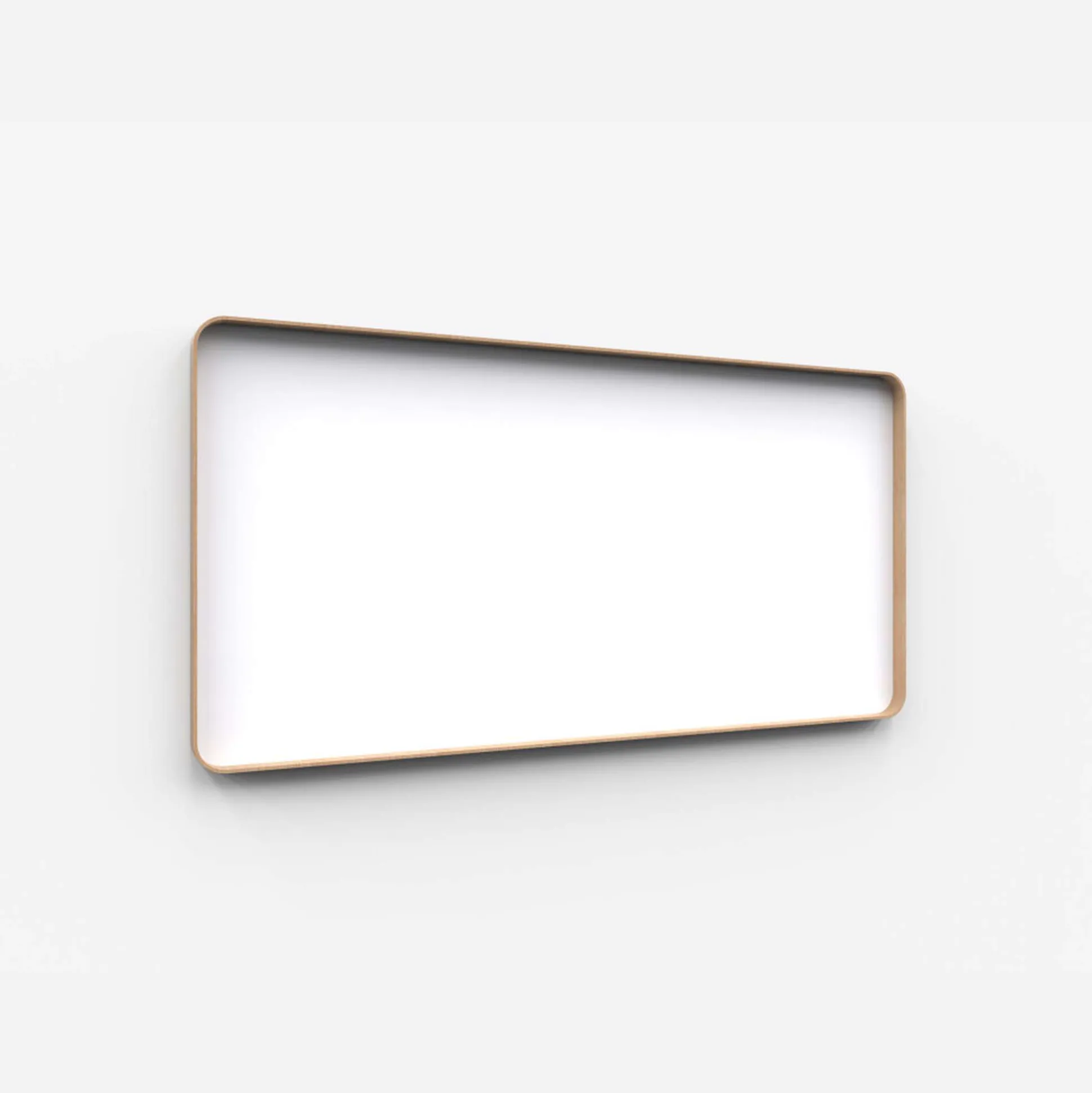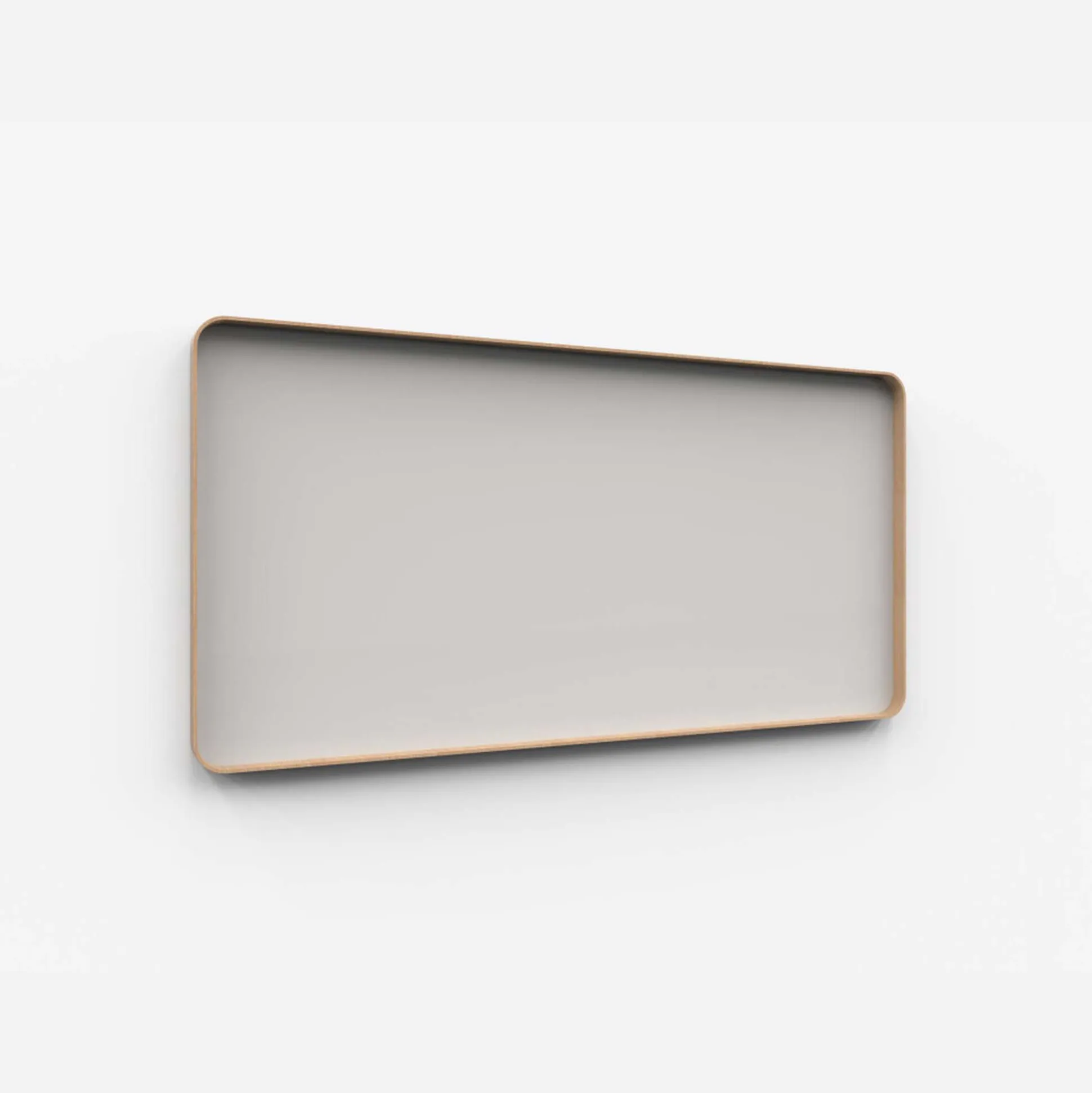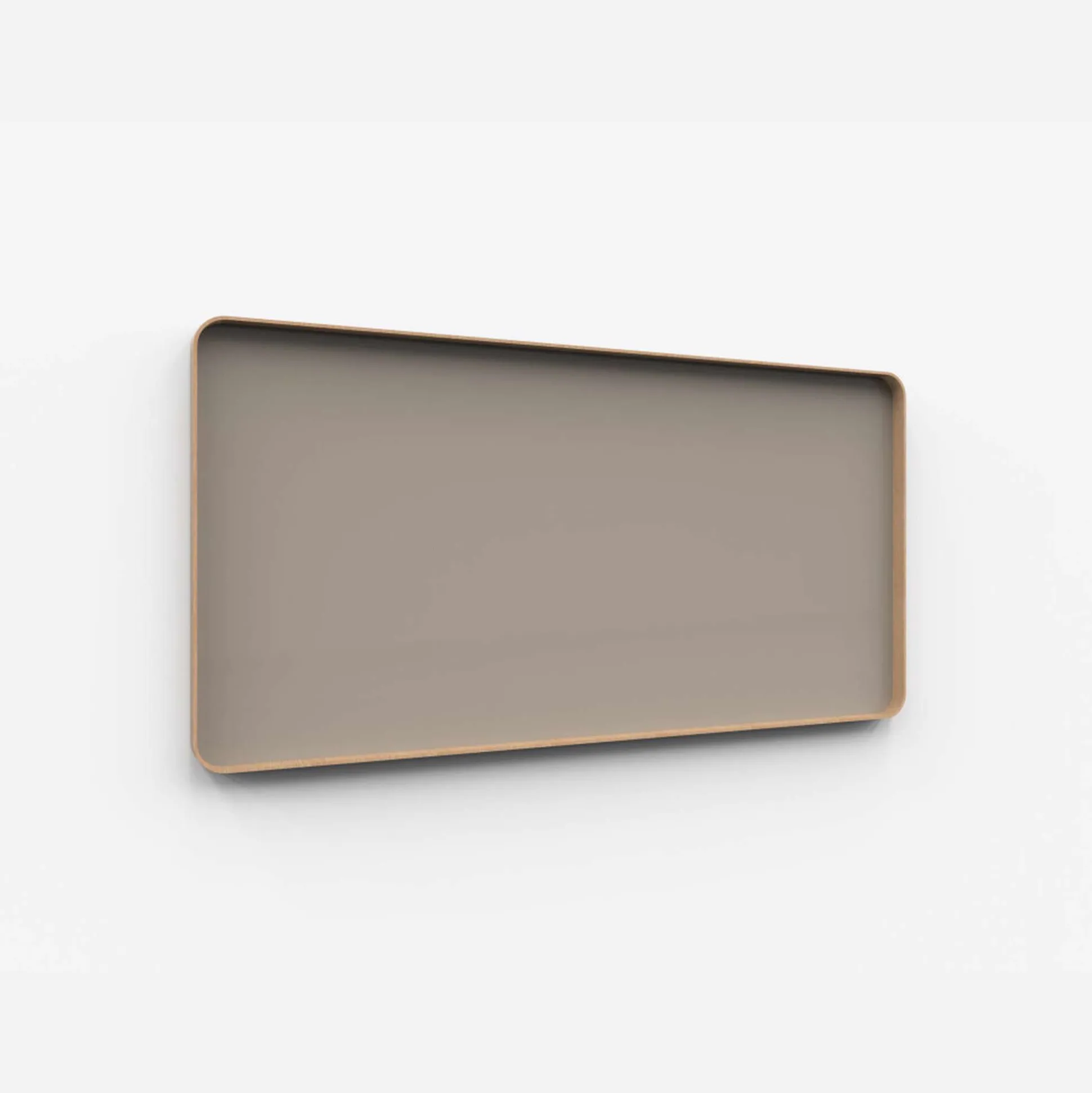 Tavlen har blød afrundede hjørner og ramme i formspændt træ, enten med egetræs ramme eller som grålakeret. Selve rammen fungerer som en indbygget pennehylde.