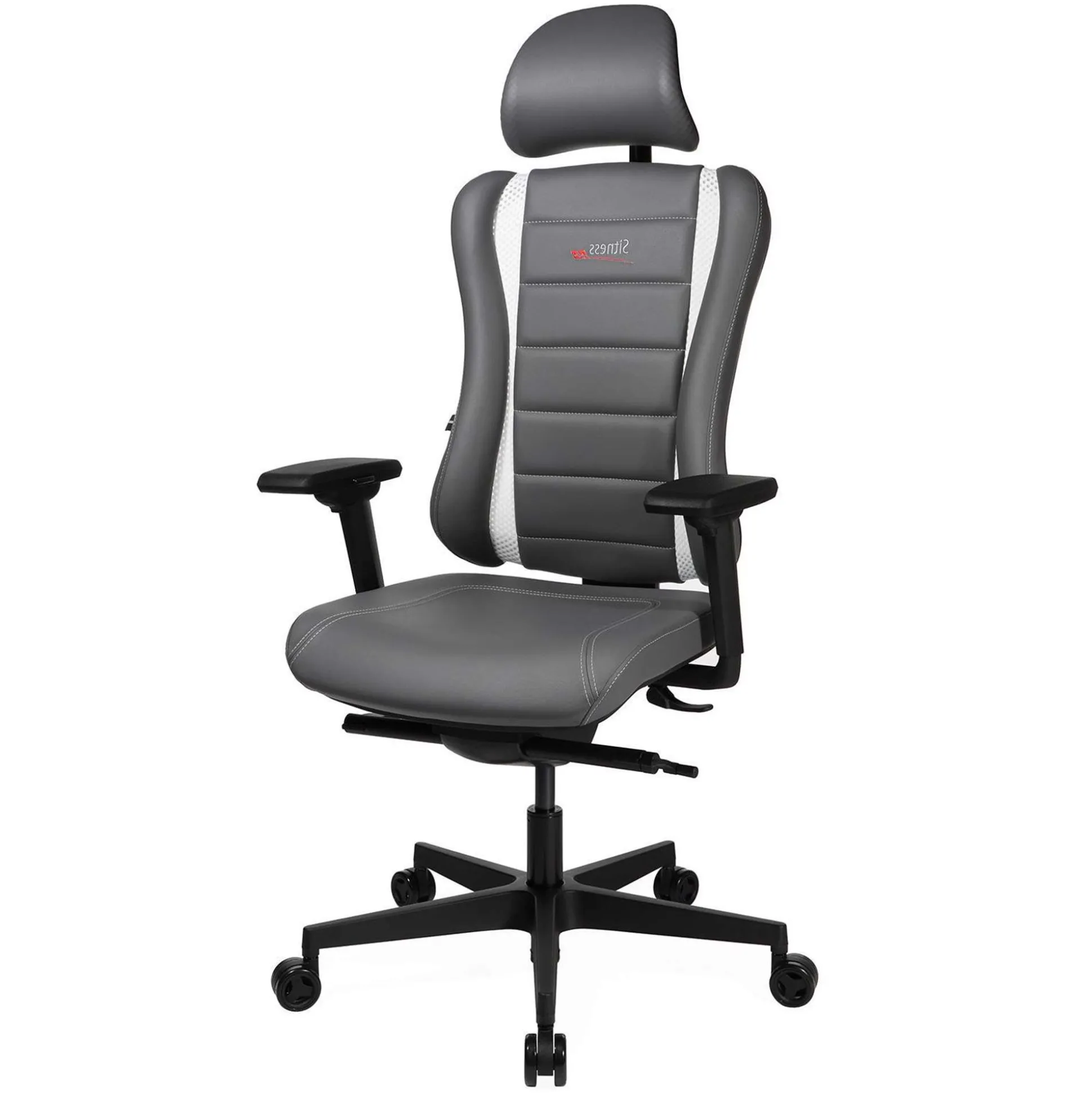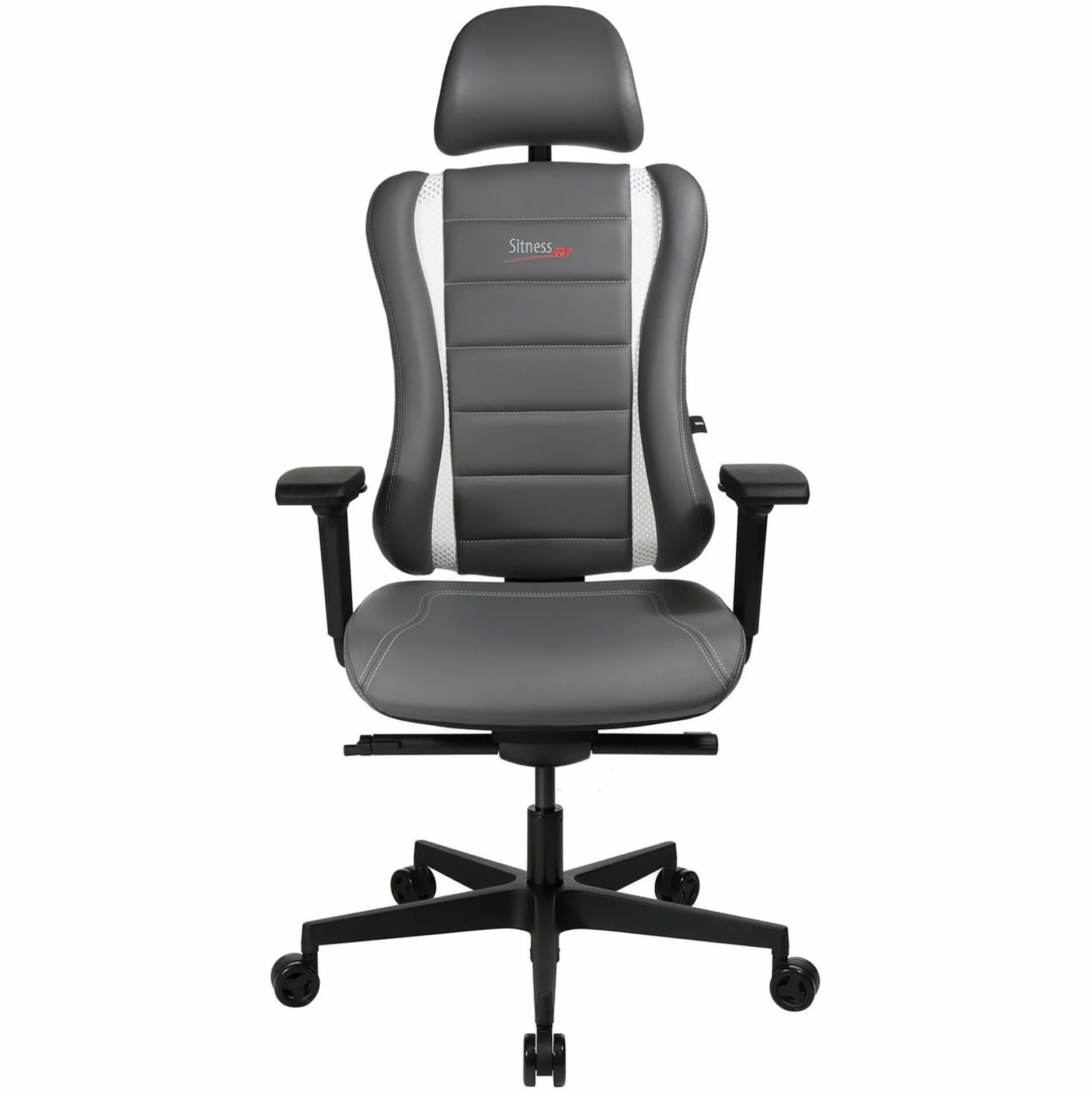 Sitness RS Pro er en ekstra lækker tyskproduceret gamerstol med mange ergonomiske funktioner. I gråt kunstlæder med hvidt net i ryggen. Nakkestøtte og ergonomiske armlæn medfølger.