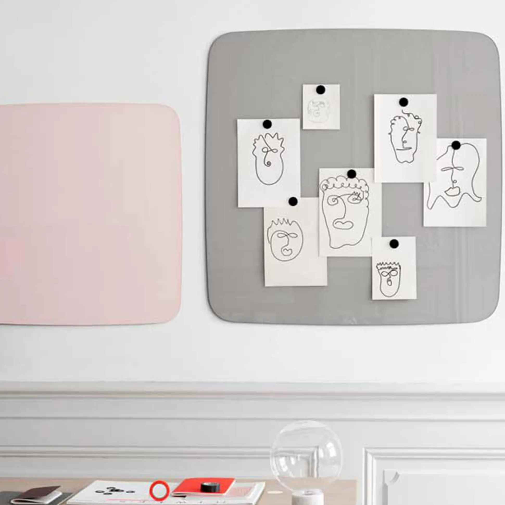 De runde hjørner giver tavlen et blødt udtryk, og den fungerer både som et designelement i indretningen samt som en funktionel skrivetavle.