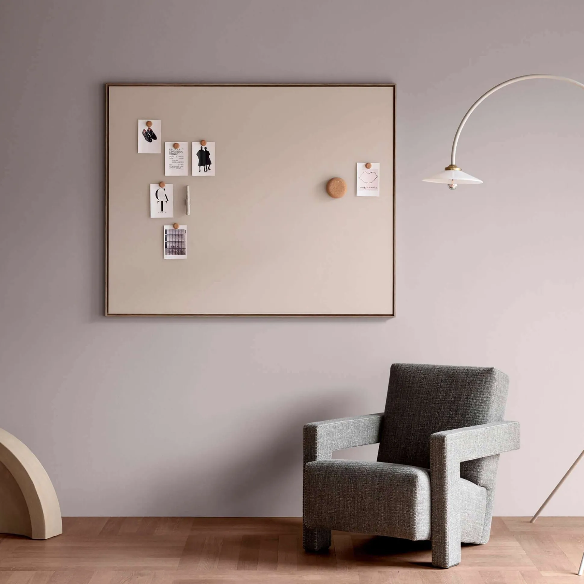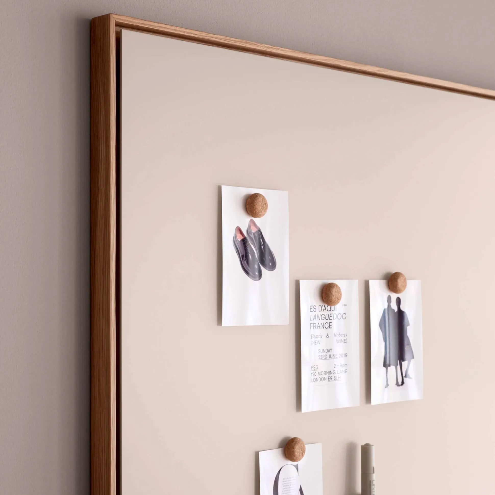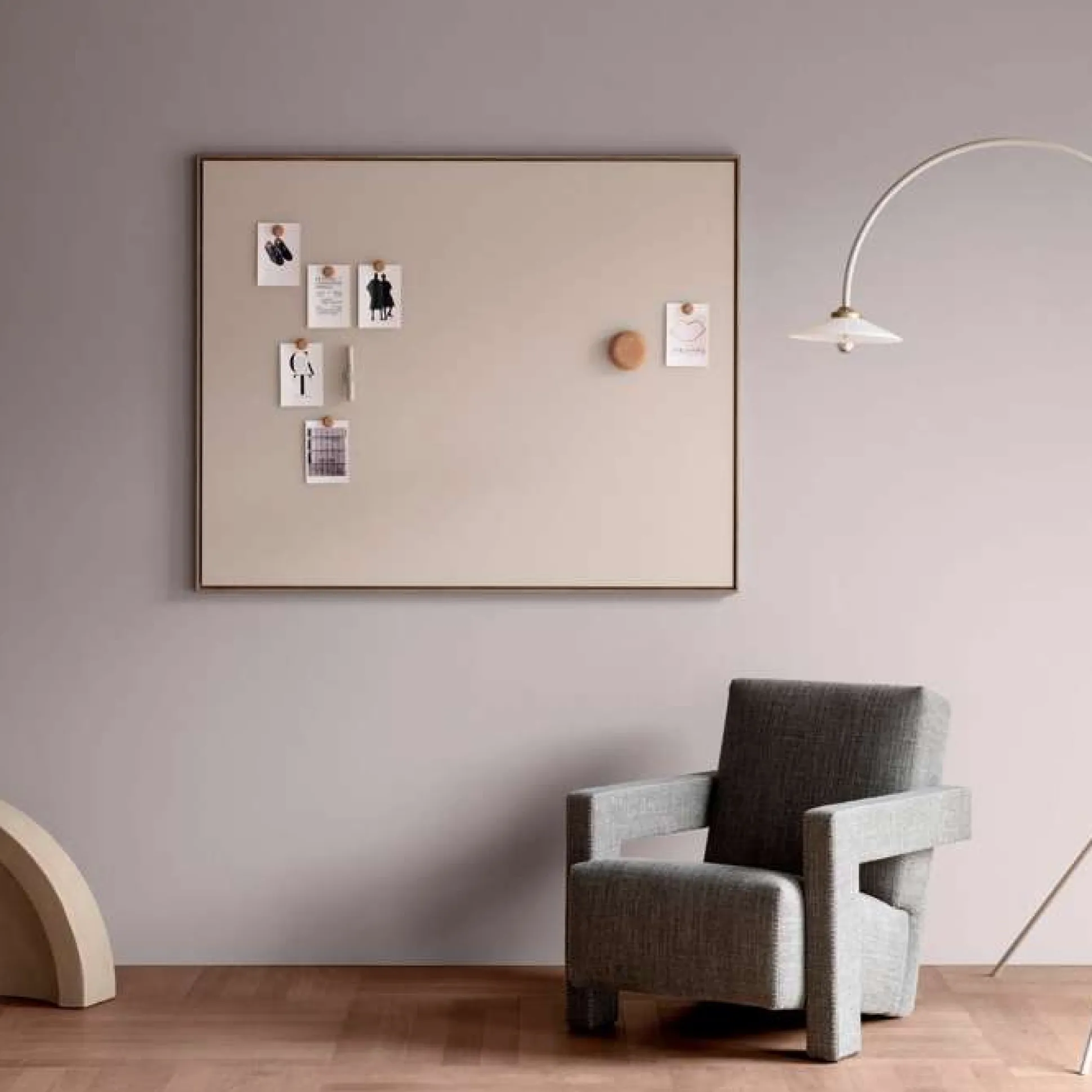 Skrivetavle i hærdet glas og ramme i massiv eg. Tavlen har en afstand mellem glas og ramme, tilsvarende rammen på et maleri. Area findes i alle Mood farver. Designet af HALLEROED.