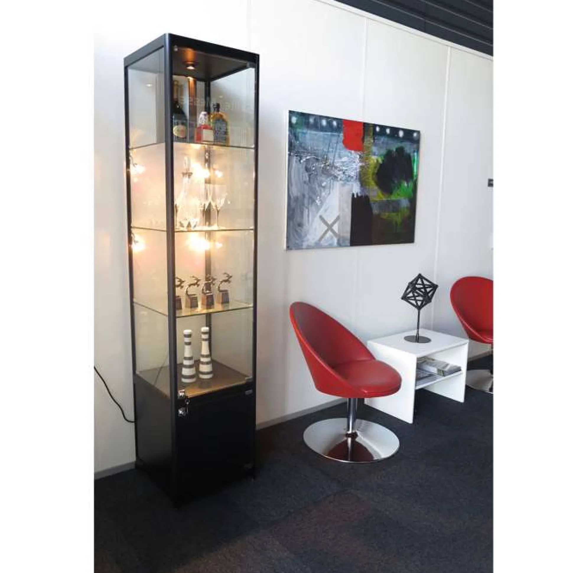 Har du brug for en glasvitrine, til udstilling og fremvisning af produkter på en enkel og elegant måde, så er serien Allum, et oplagt valg til både større som mindre ting.