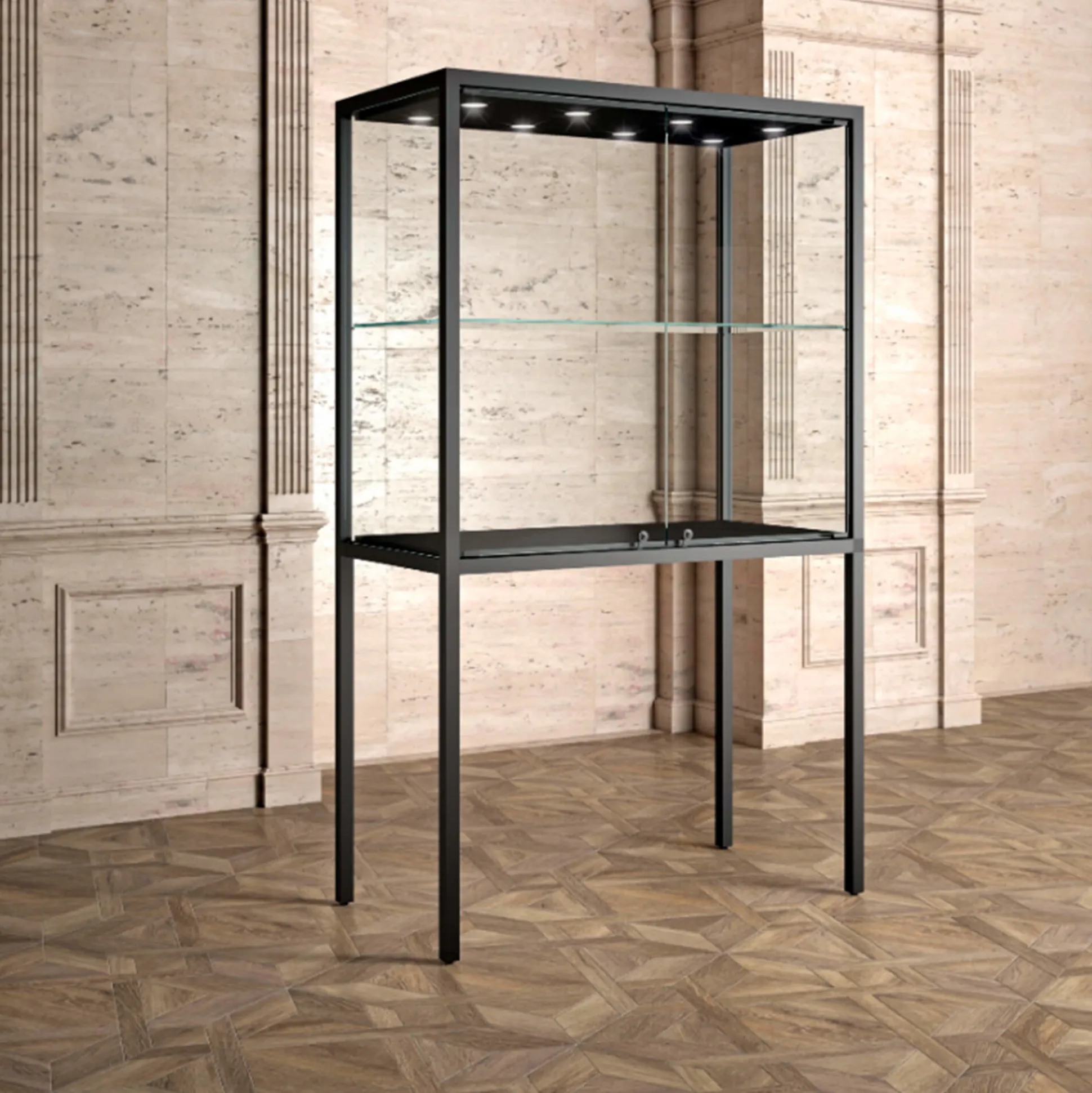Eksklusiv og elegante glasmontre/glasvitriner Arta i matsort lakeret jern med anti-fingeraftryk finish.