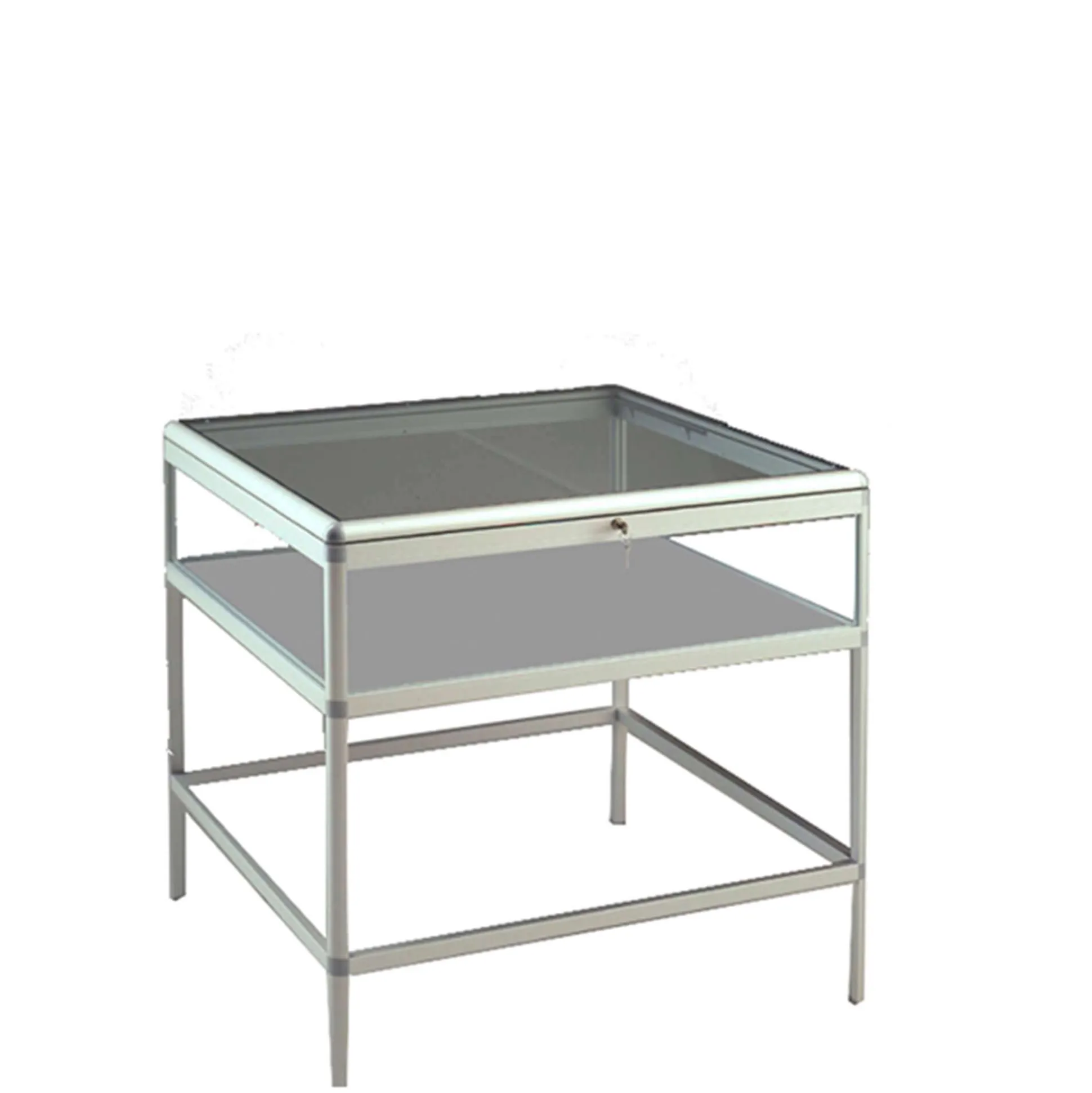 Profil er en elegant glasmontre 90x90x88h cm, med display man kigge ned oppe fra. Dette giver mulighed for at se tingene tættere på, glasmontren har et indvendigt mål på 20 cm, og er med tophænglet låge. Display vitrinen findes i sort, grå eller hvide aluminiumsprofiler.