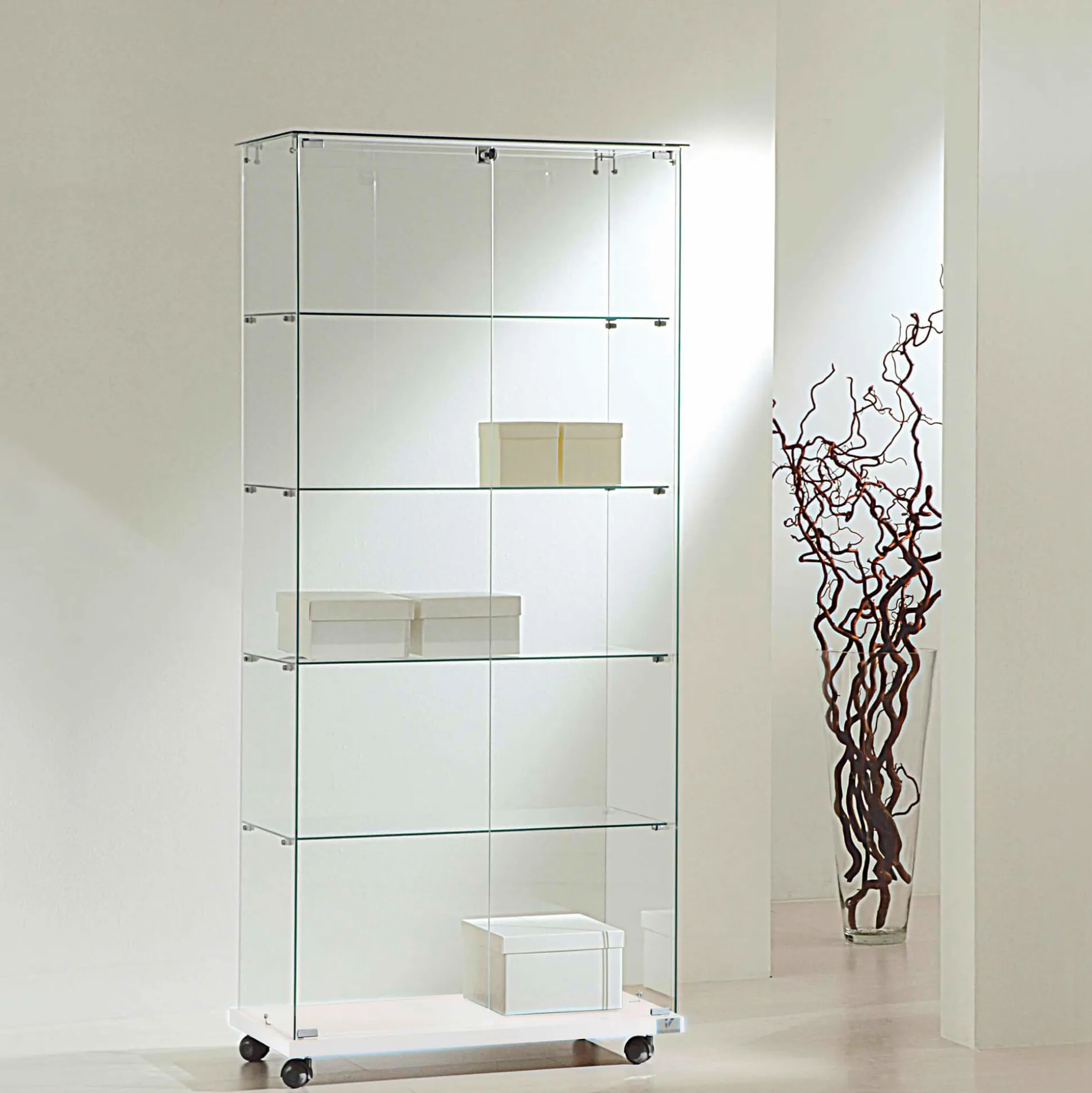Glasvitrine/glasmontre i hærdet glas, 4 glashylder med 2 låsbare låger.