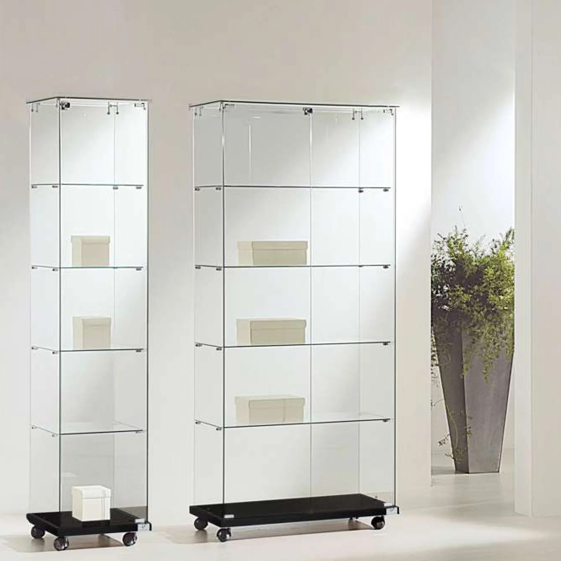 Glasvitrine/glasmontre i 5 mm hærdet glas, til fremvisning og udstilling af produkter i butik, showroom, til pokaler eller anden udstilling på skoler og i foreninger.