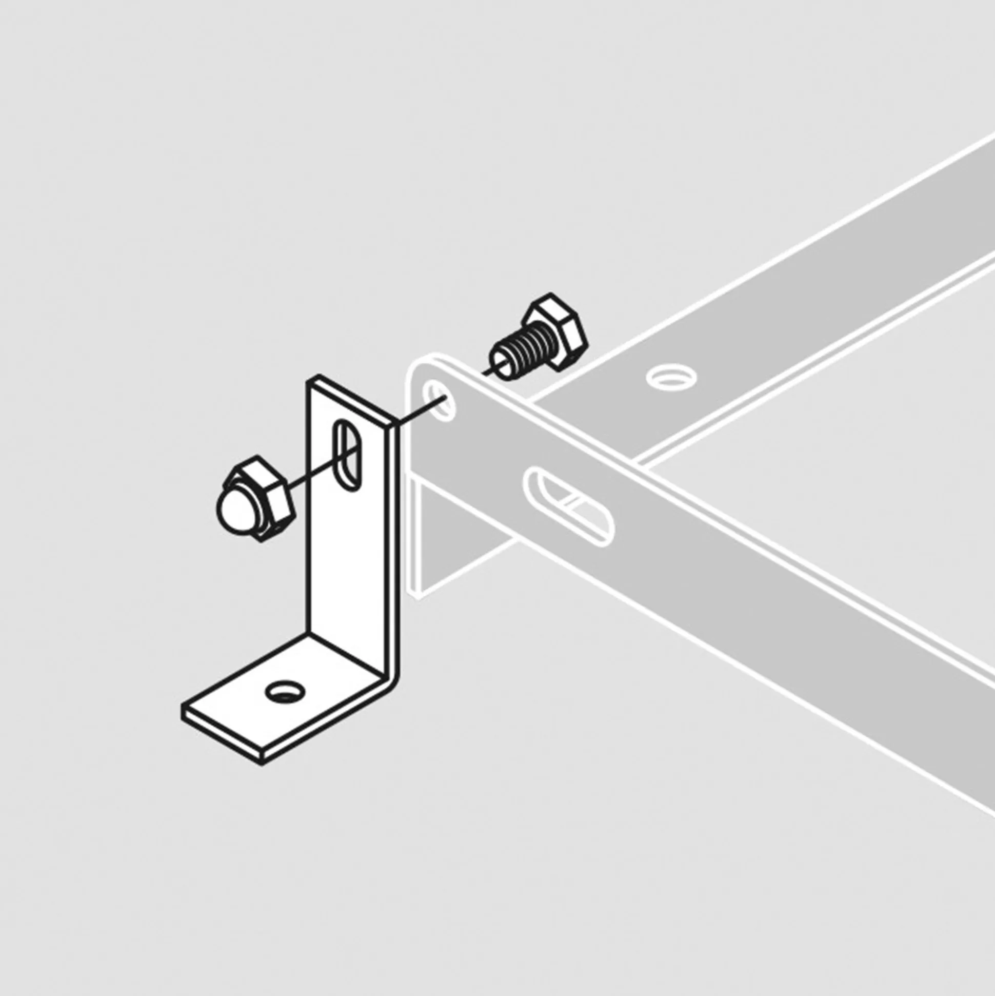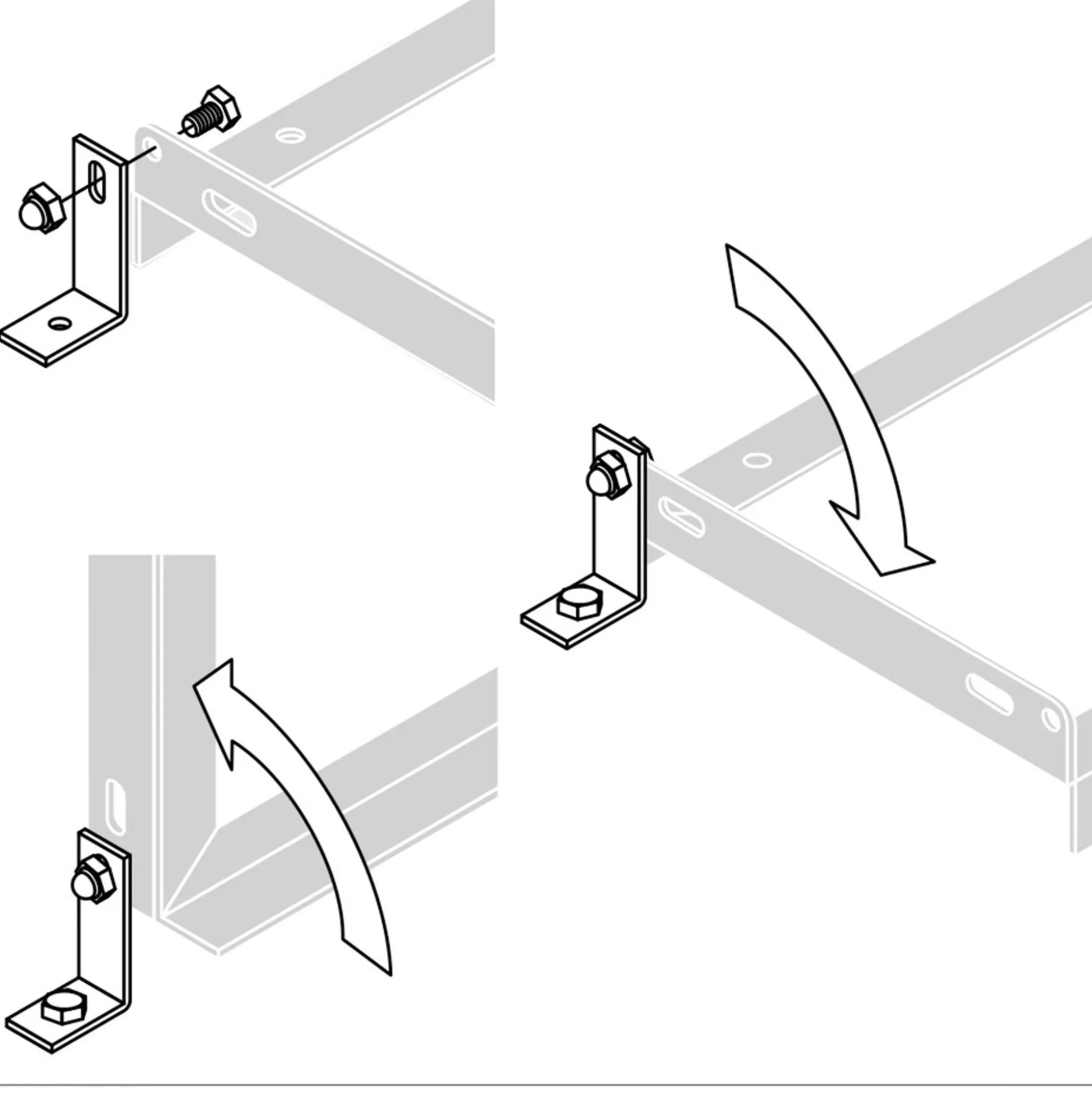 Sættet består af 4 beslag + skruer i galvaniseret stål til 1 cykelstativ.